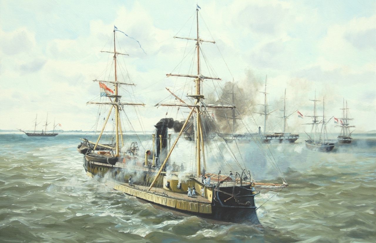 Hr.Ms. Schorpioen tijdens manoeuvres in het Marsdiep omstreeks1870