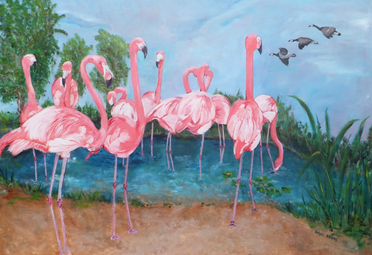 flamingo's acryl op doek in opdracht