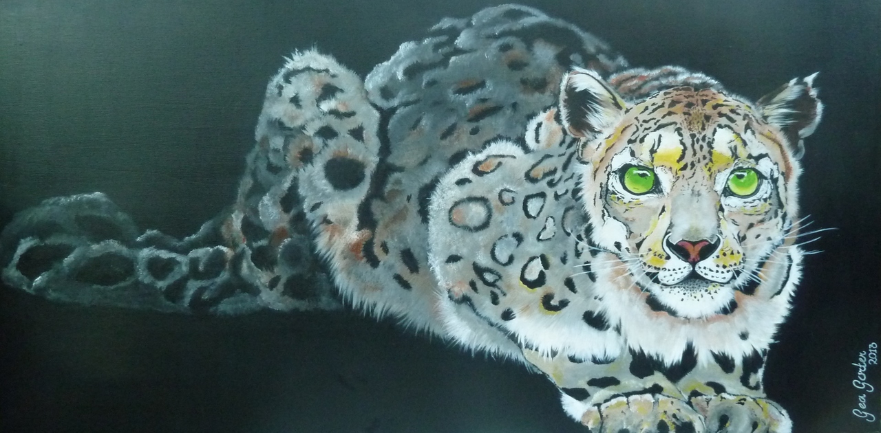 Panter op houten plaat geschilderd.