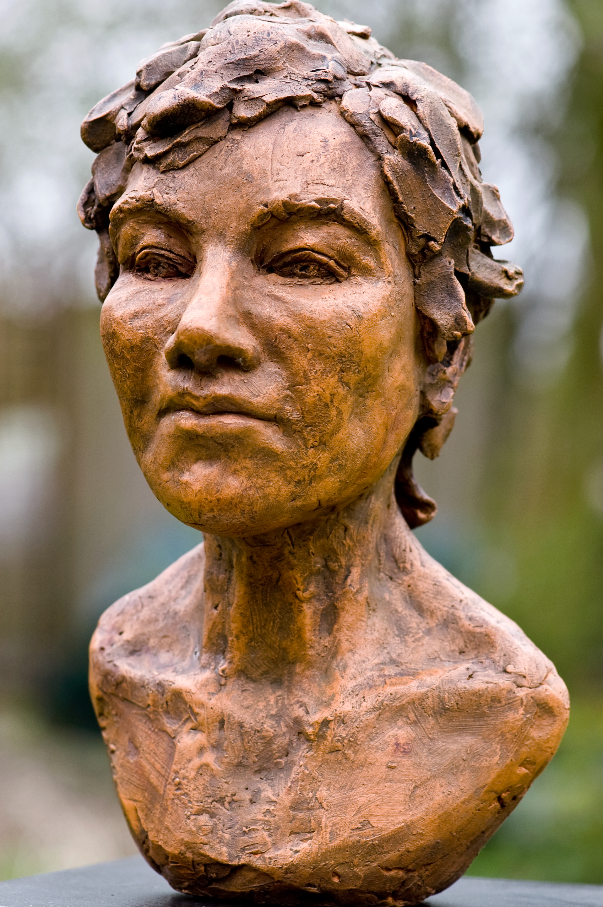 beeld vrouw realistisch meisjesportret (gebakken klei; lichtbruine patine)