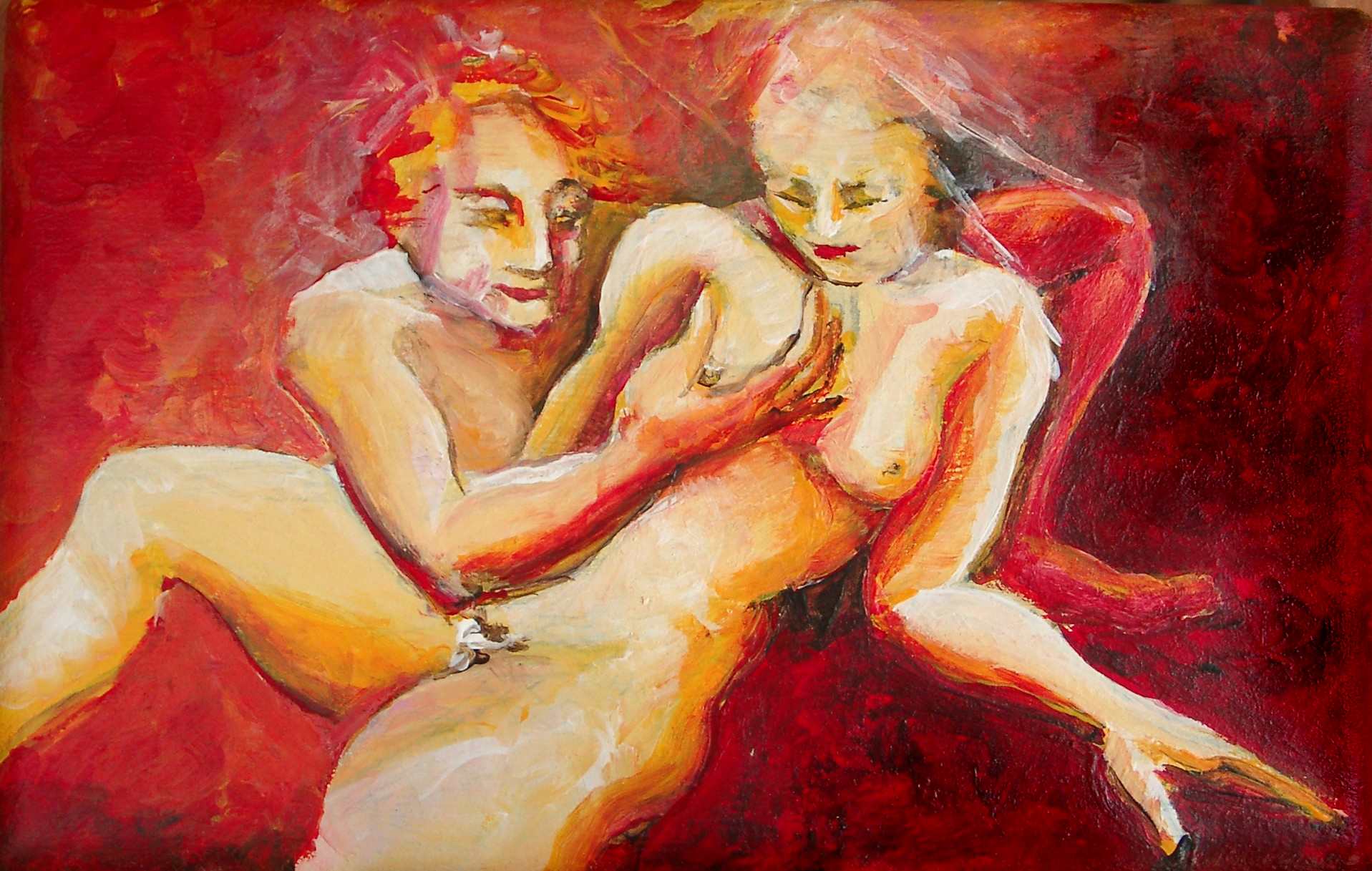 Schilderij Rood Naakt Paneel Kunst Slaapkamer Erotische