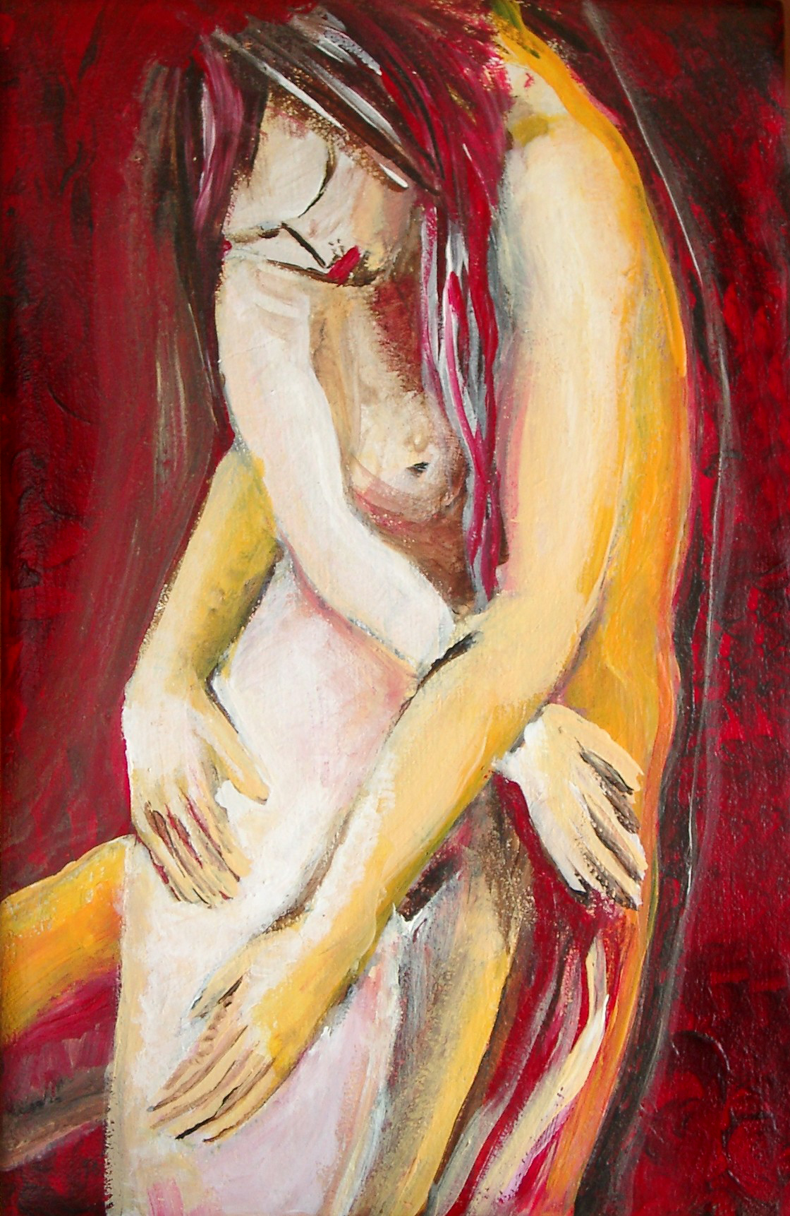 Schilderij Rood Naakt Paneel Kunst Slaapkamer Erotische