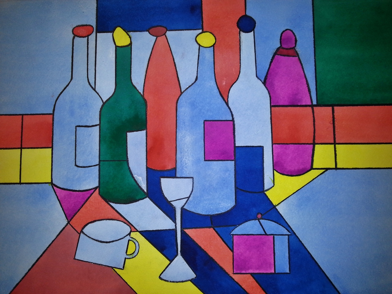 Fles Flessen Bottle Glaswerk Bottles Glassware Acryl Kleurrijk Wijn Wijnfles Wine