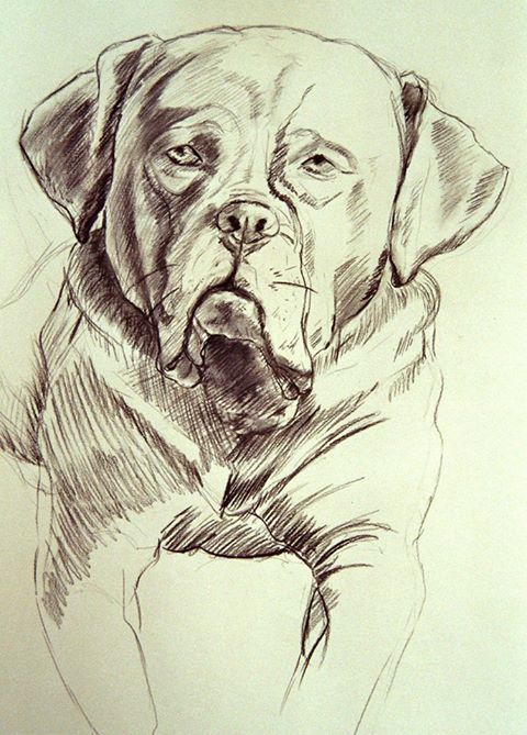 Aegis, Franse Bordeaux dog, houtskool op papier. Niet te koop.