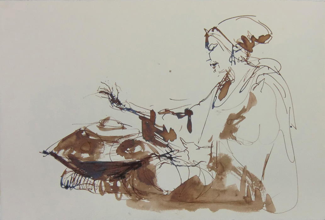 In Brown Hang Bistre Ink Player Drawn
