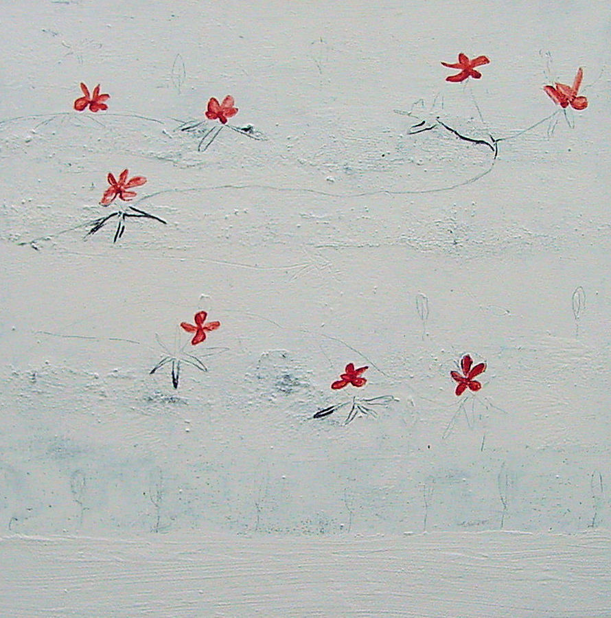 De poëtische waarde van mijn werk staat voorop. Minimale kleuren, lijnen en vormen worden gevoelsmatig gerangschikt op handgeschept papier en panelen. Het zijn lichte werken. Soms met zwarten en roden, geïnspireerd door de natuur en de muziek.