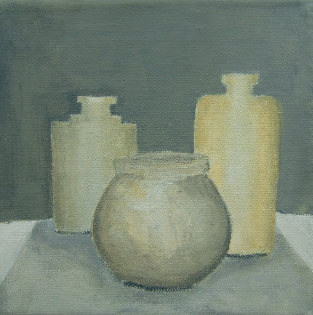 Geabstraheerde potjes in beperkte kleuren.