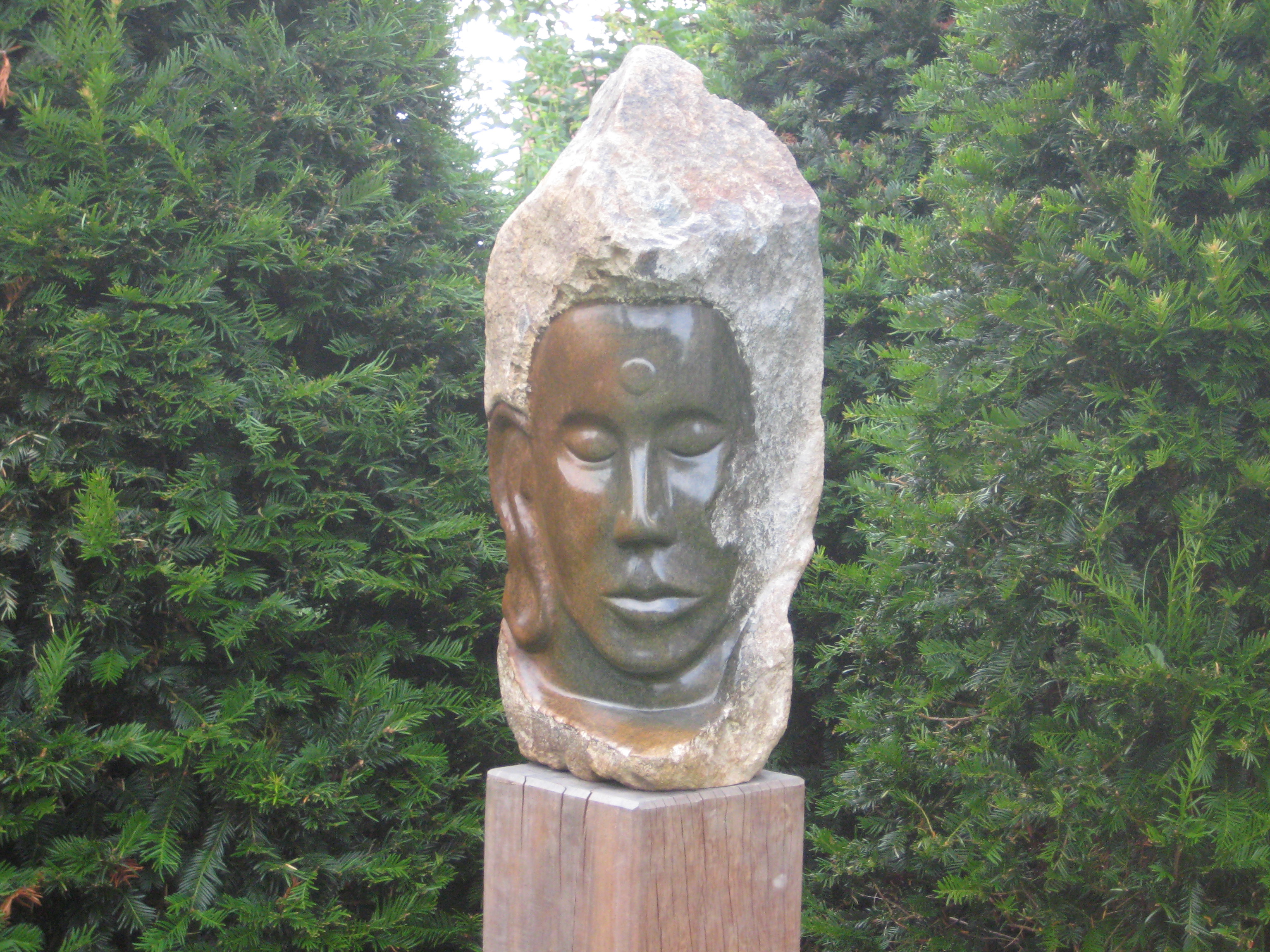 Bruin/Zwart serpentijn. Tijdens een rondreis door het boeddhistische Sri Lanka heb ik inspiratie opgedaan voor dit beeld.