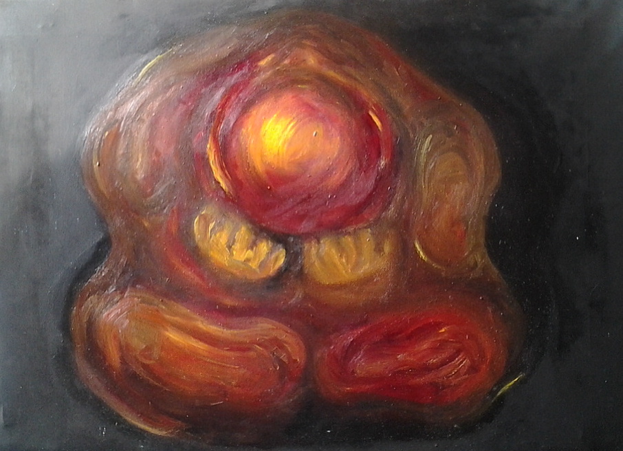 ineengedoken zit hij daar helemaal alleen. heb geen medelijden met hem hij is er juist voor om jou te helpen met al je leed en verdriet. hij draagt de zonden van het leven met zich mee, hij neemt de jouwe over, dat is zijn taak.