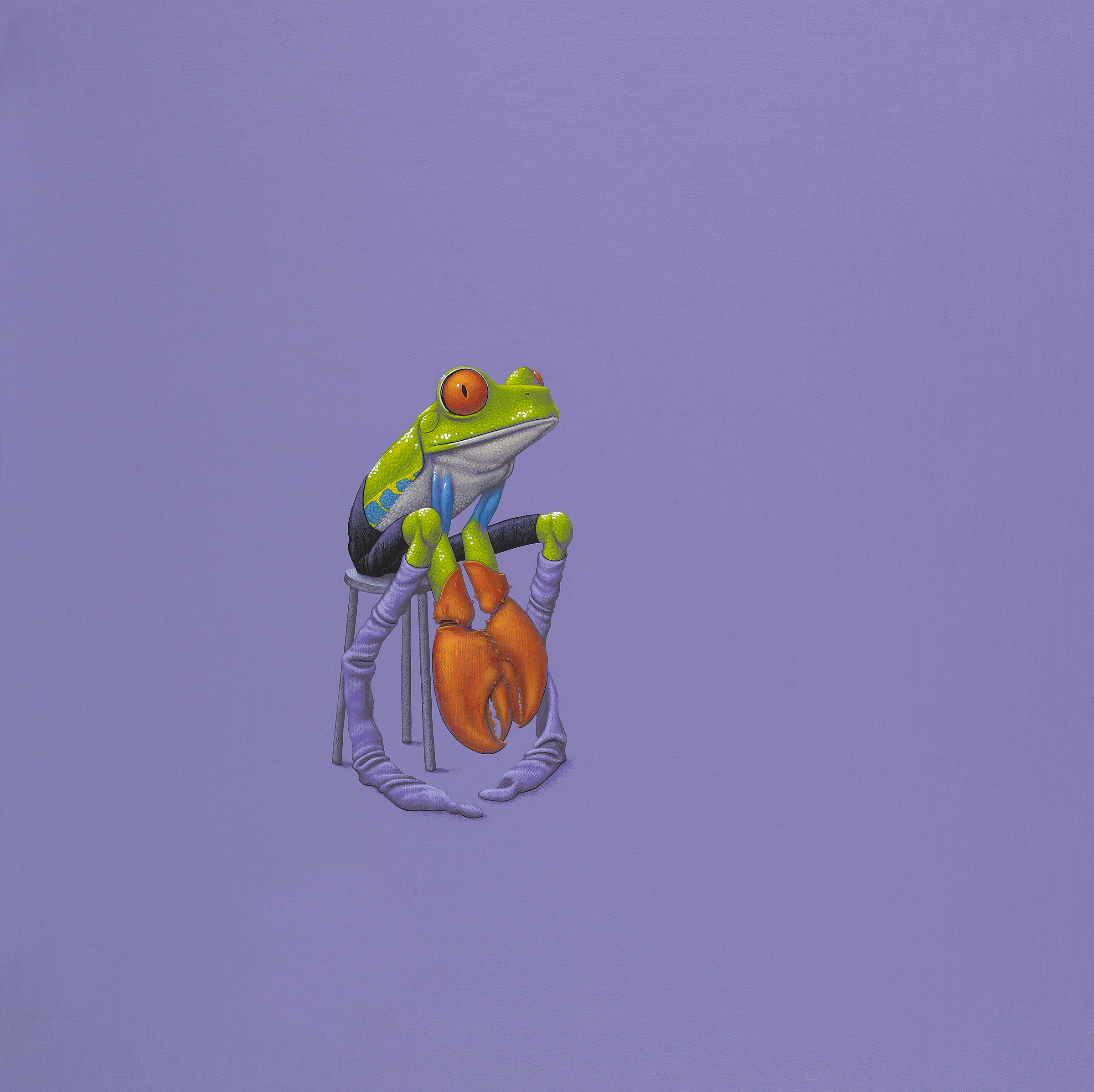 Schilderij Figuratief Paars Figuratie Dieren Art Dier Realistisch Surrealistisch Kikker Kunst Painting Schilderijen Acrylic Purple Surrealisme Realisme Frog Figurative Illustratie Kunstenaar Kunstwerk Kreeft Sokken Realistische