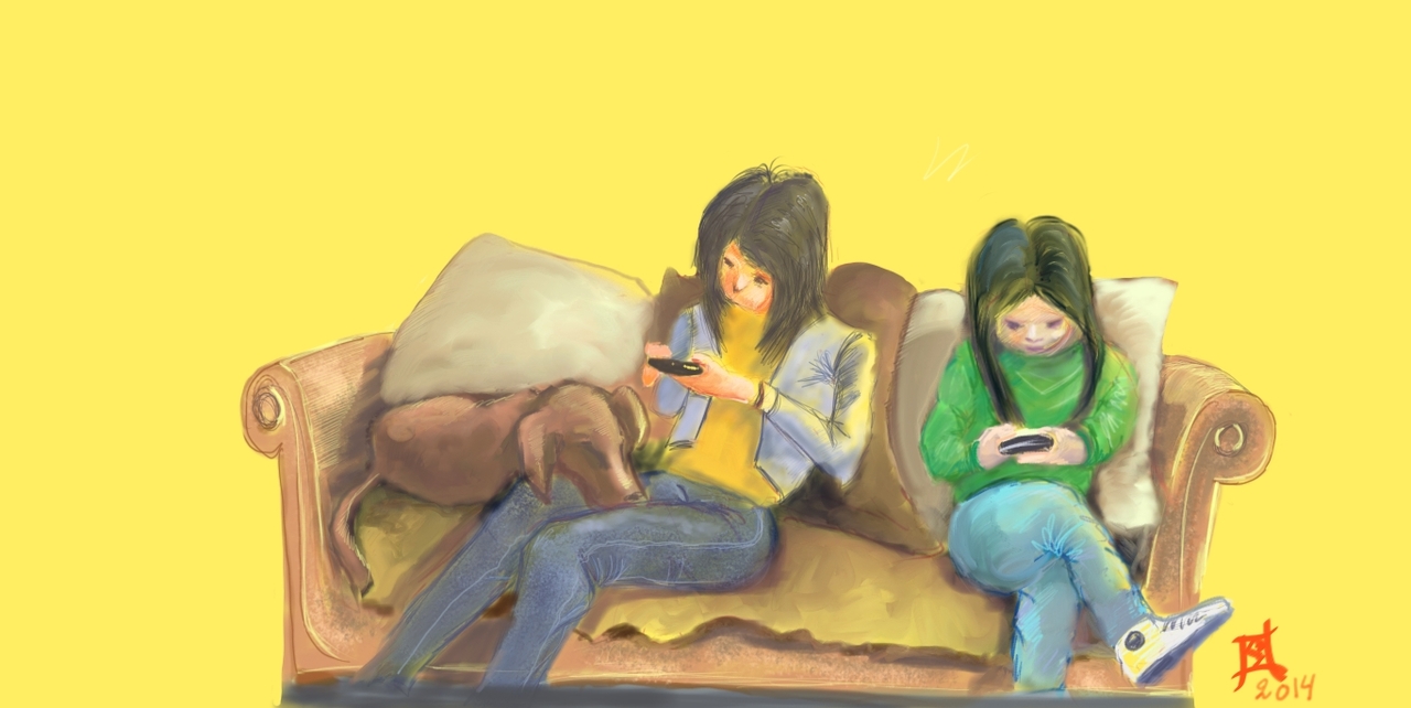 Meisjes Girls Bank Couch Gezellig Fun Mobiel Cell Phone