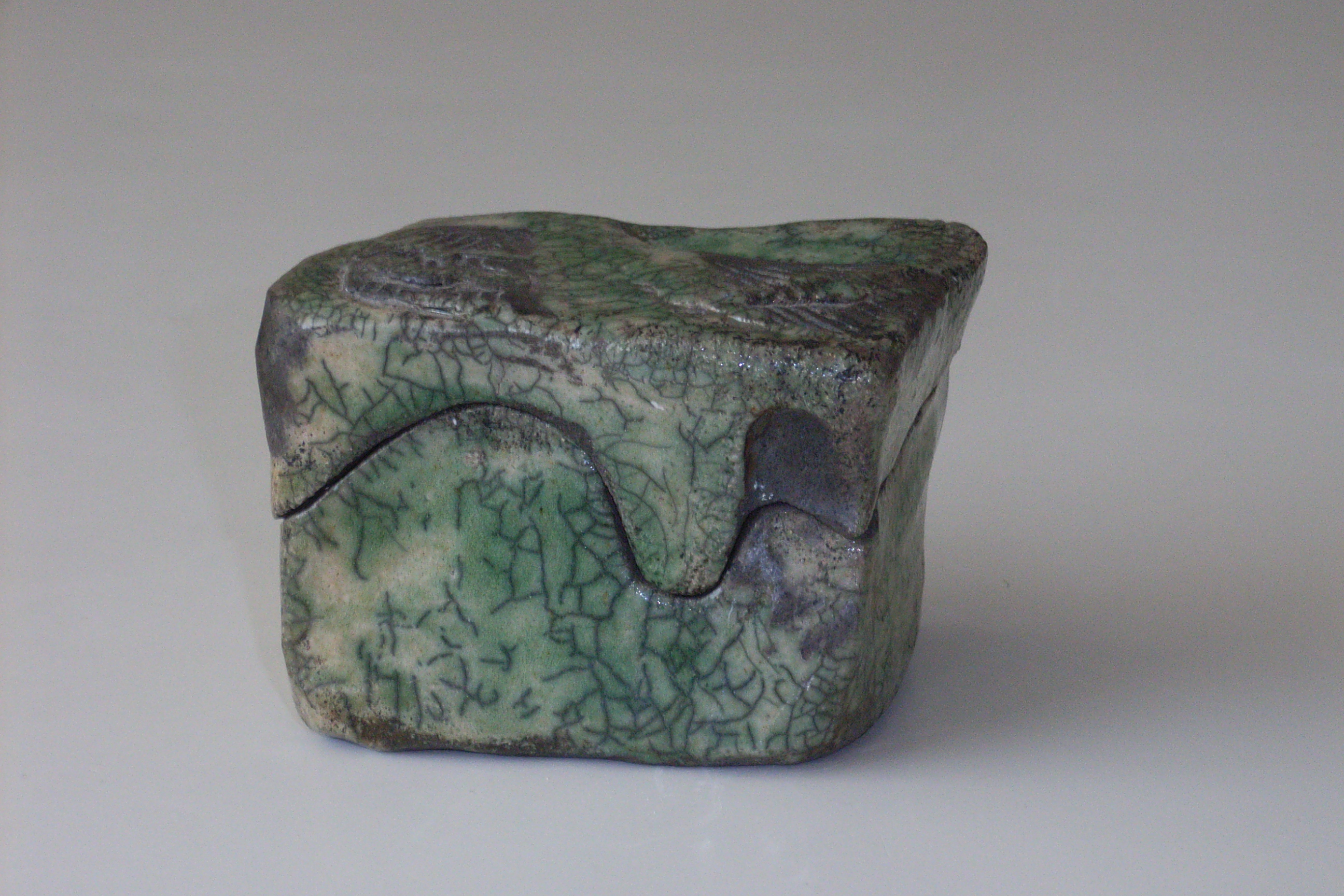 Doosje Met Schelpreliëf Versierd Raku Groen