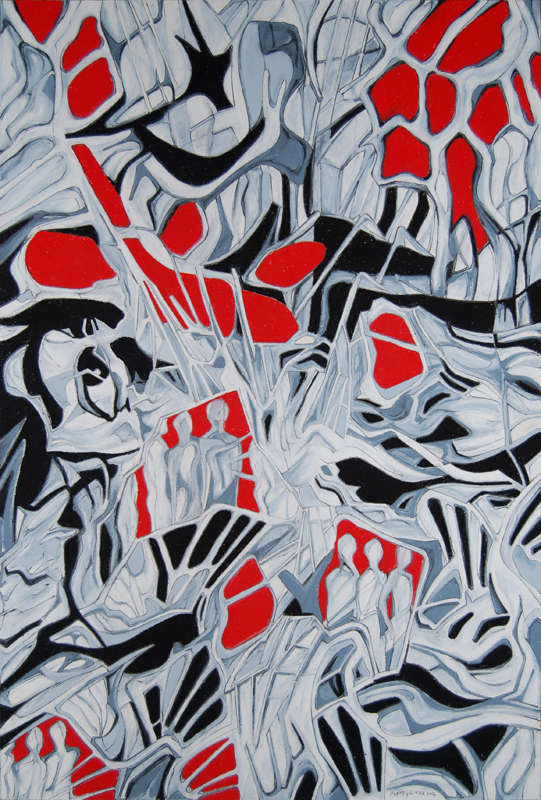 Het beelden werk van Martijn Huting, tekeningen, oliepastels, collages en polaroids, zweeft tussen abstract en figuratief, tussen droom en werkelijkheid, tussen heden en verleden, tussen feit en fictie. Voortkomend uit de architectuur, verwijzend naar de (kunst) geschiedenis, de literatuur en zichzelf, wordt een complex van betekenissen en verhalen ontwikkeld, waarin de tekeningen en oliepastels fungeren als uitvergrote momenten, om later weer in het verhaal te worden opgenomen.