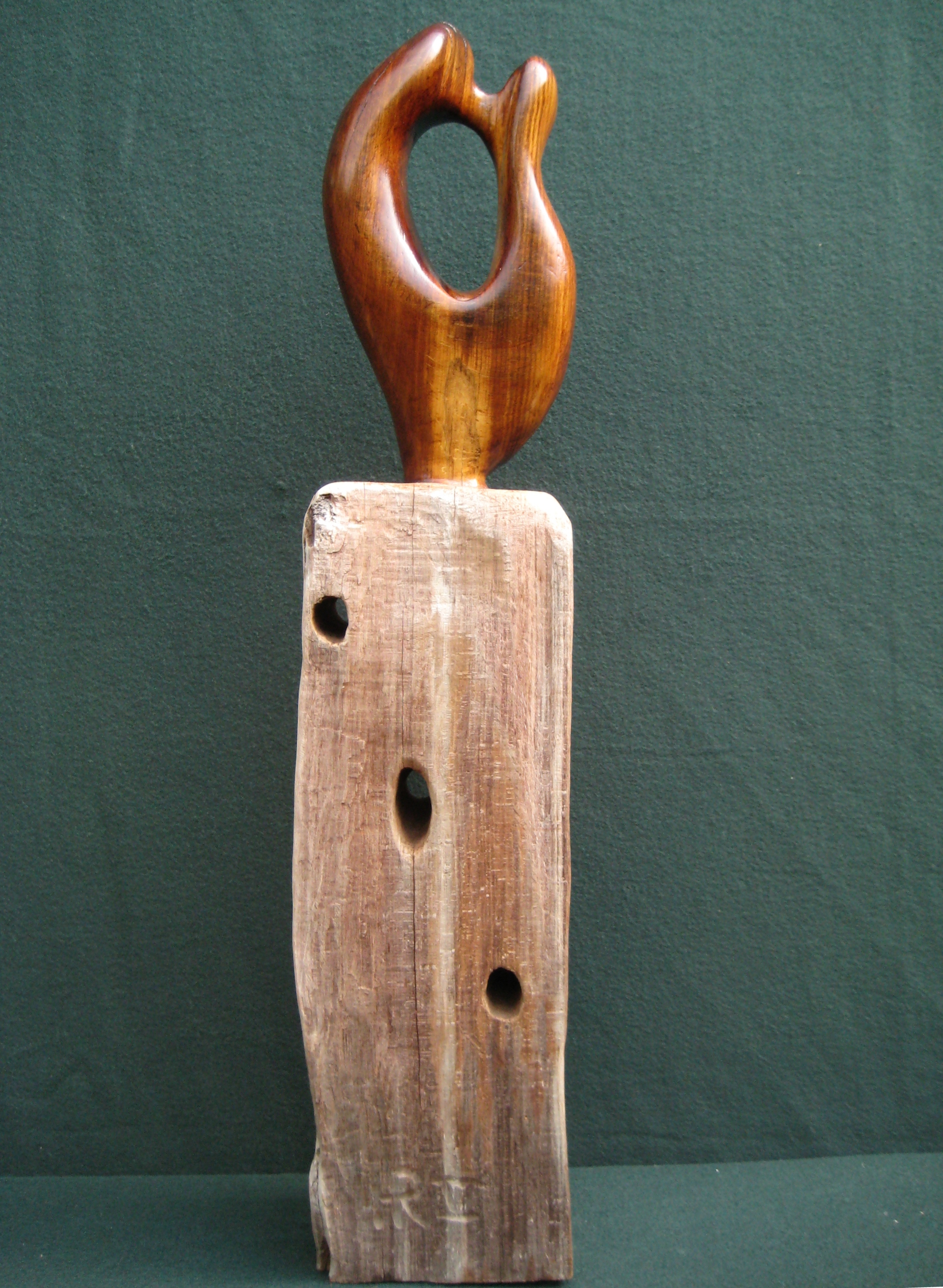 Ik ben Henny Rijkeboer (1941) en woon in Haaksbergen. Tijdens mijn wandelingen en fietstochten in de natuur zoek ik hout. Soms meteen, soms wat later zie ik wat het hout mij te bieden heeft. Na het nodige hak- en schuurwerk, waarbij ik mij laat leiden door de vorm van het hout, ontstaan vaak natuurlijke abstracten. Al kind sneed ik al kleine houtfiguren. Rond mijn veertigste maakte ik mijn eerste grote beeld. Mijn pensionering bood mij de ruimte om mijn liefhebberij te professionaliseren. Ik heb hierbij mijn eigen technieken ontwikkeld.