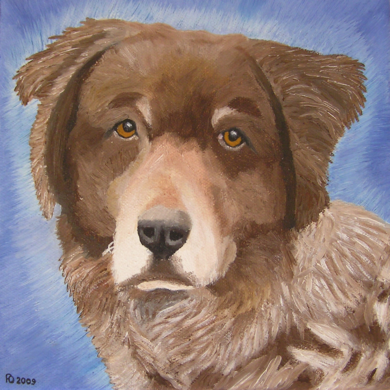 Een schilderij van mijn vroegere hond Bruno.
