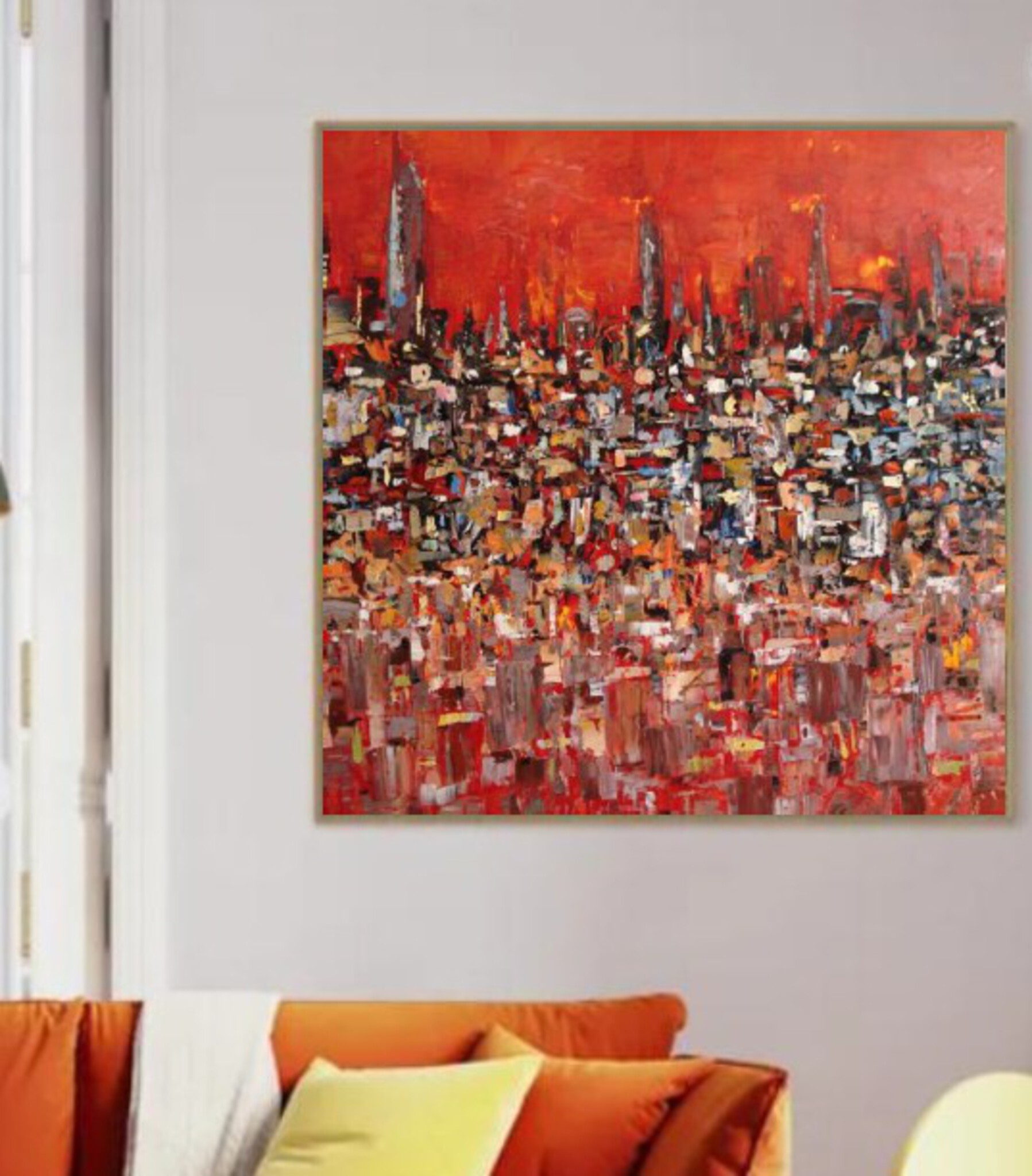 In an era neither future nor past, there exists a city forged not of stone or steel, but of memory and motion. The City That Burned Through Time rises like a fever dream from the ashes of its own becoming, each brushstroke a heartbeat, each smudge a whisper of lives once lived. At first glance, the city blazes with fire—an inferno of crimson skies and smoldering towers. But look closer, and you’ll see the chaos isn’t destruction—it’s persistence. A thousand stories stitched together in pigment: lovers who never met, revolutions that never sparked, artists who painted with their souls rather than their hands. The skyline is jagged, rising like questions in the mind of a restless spirit. Below it, the people—abstracted and myriad—move like sparks in a storm, bound together by something unseen. Hope? Hunger? History? No one knows. Not even the city.