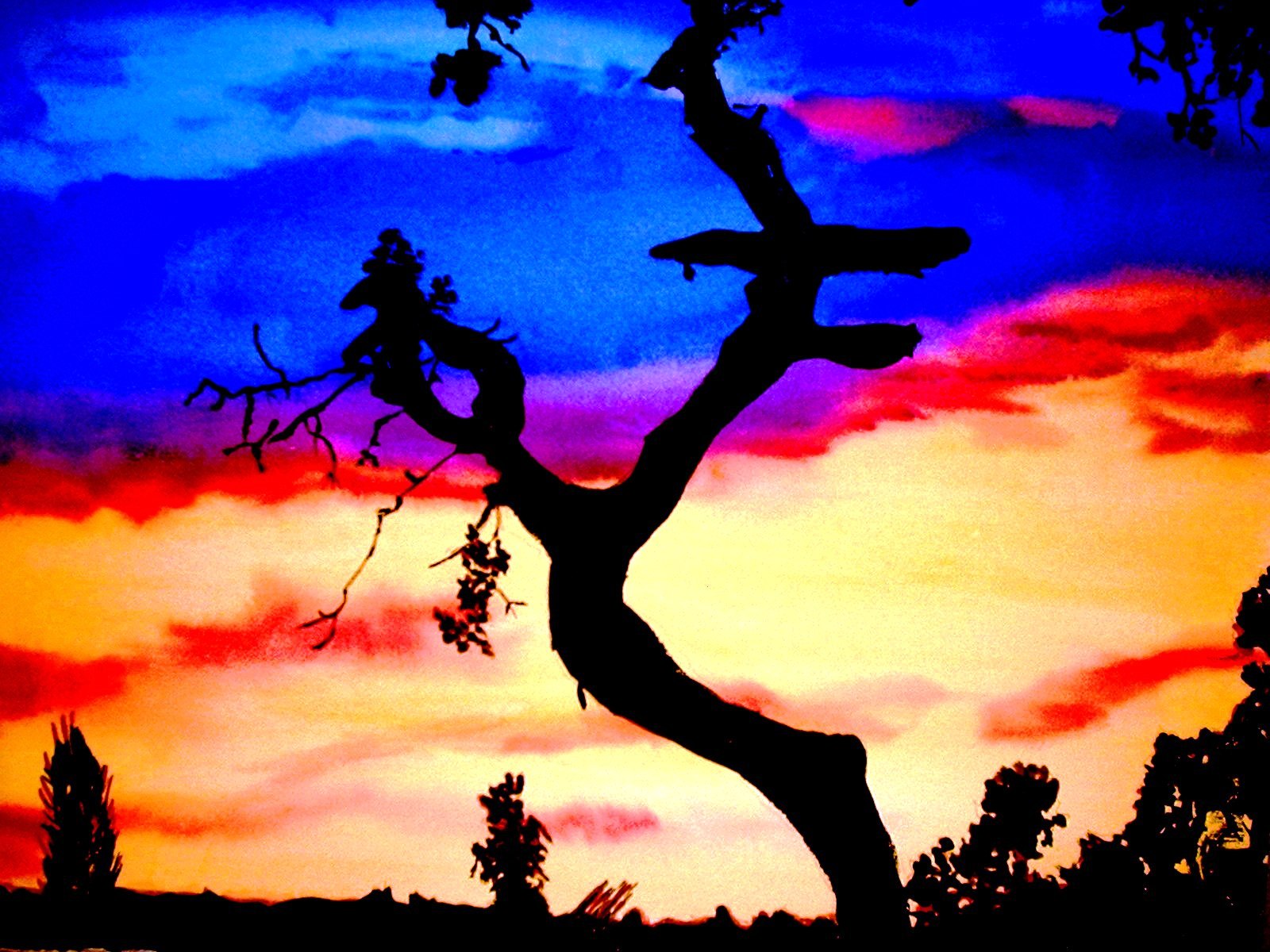 Zon Mystiek Afrika Aquarel Dood Vuur Earth Aarde Vernietiging Destruction