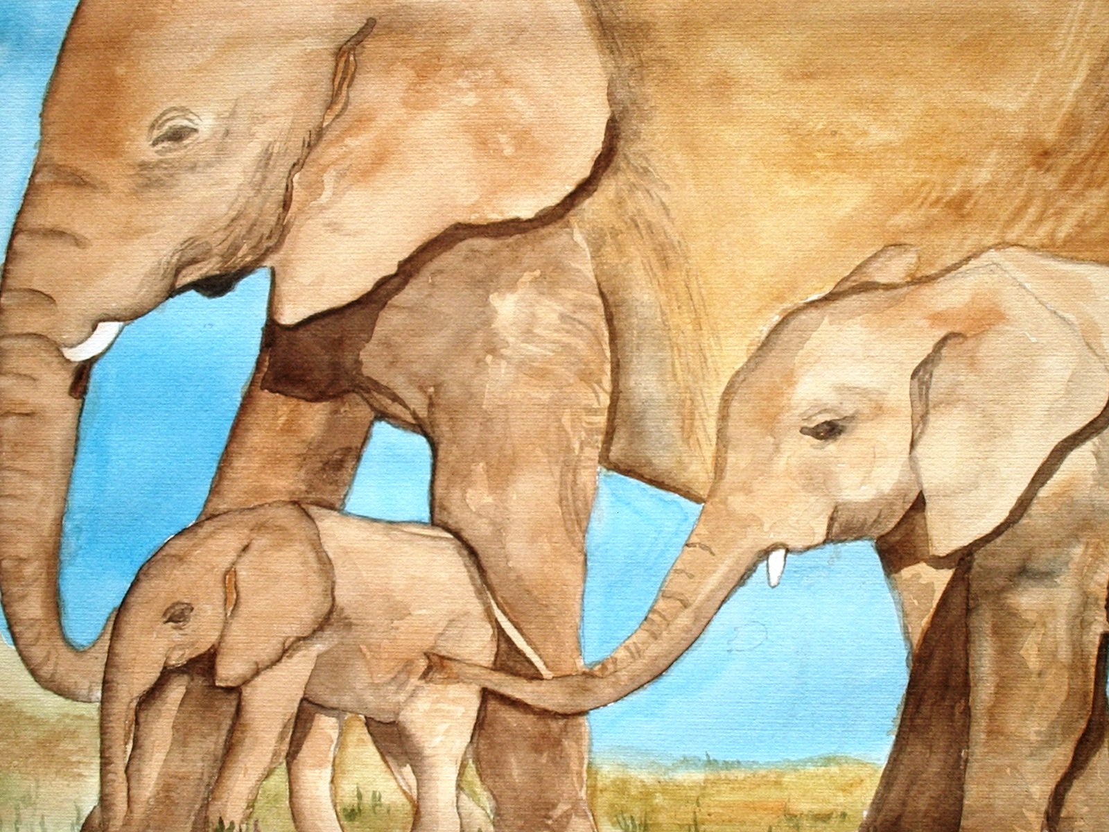 Groep Dieren Afrika Aquarel Realistisch Olifanten
