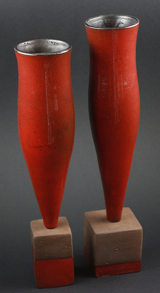 Rood Zwart Vaas Sokkel Klei Vorm Gedraaide Geen Pure