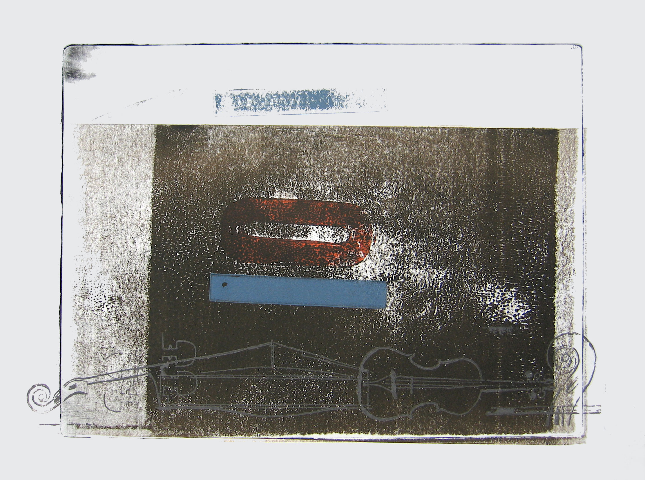 Kleurklank is een serie van vier werken in gemengde techniek. De basis is een droge naald ets met daar overheen vlakken en drukvormen.