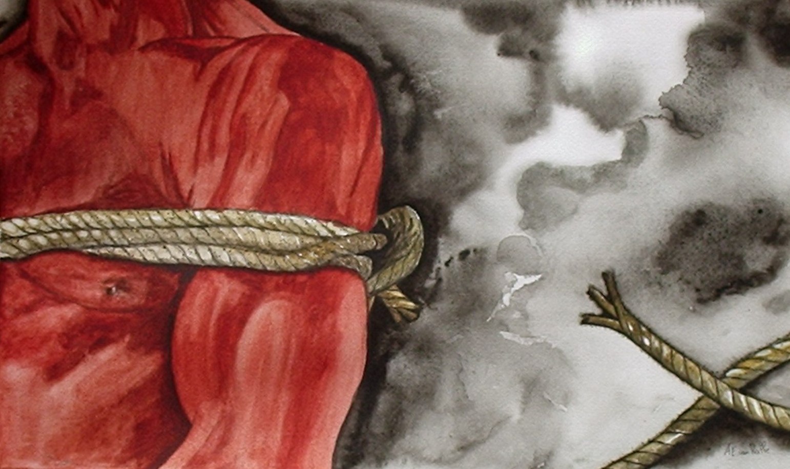 Rood Expressief Naakt Nude Aquarel Red Sureeel Mannelijk Male