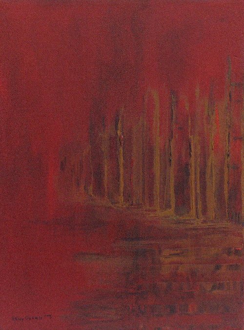 Rood Acryl Goud Bruin Stad Pasta