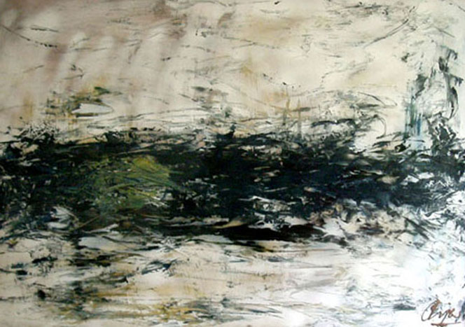 Arjen van der Linden Zijn werk bestaat uit krachtig opgezette contrasten, soms samenvloeiend en dan weer elkaar afstotend. Ieder werk is een gevecht. Veelal grote doeken met thema's als stadsgezichten, landschappen en skylines geboetseerd in acryl op linnen. Frans Janssen (Kunstimpressario)