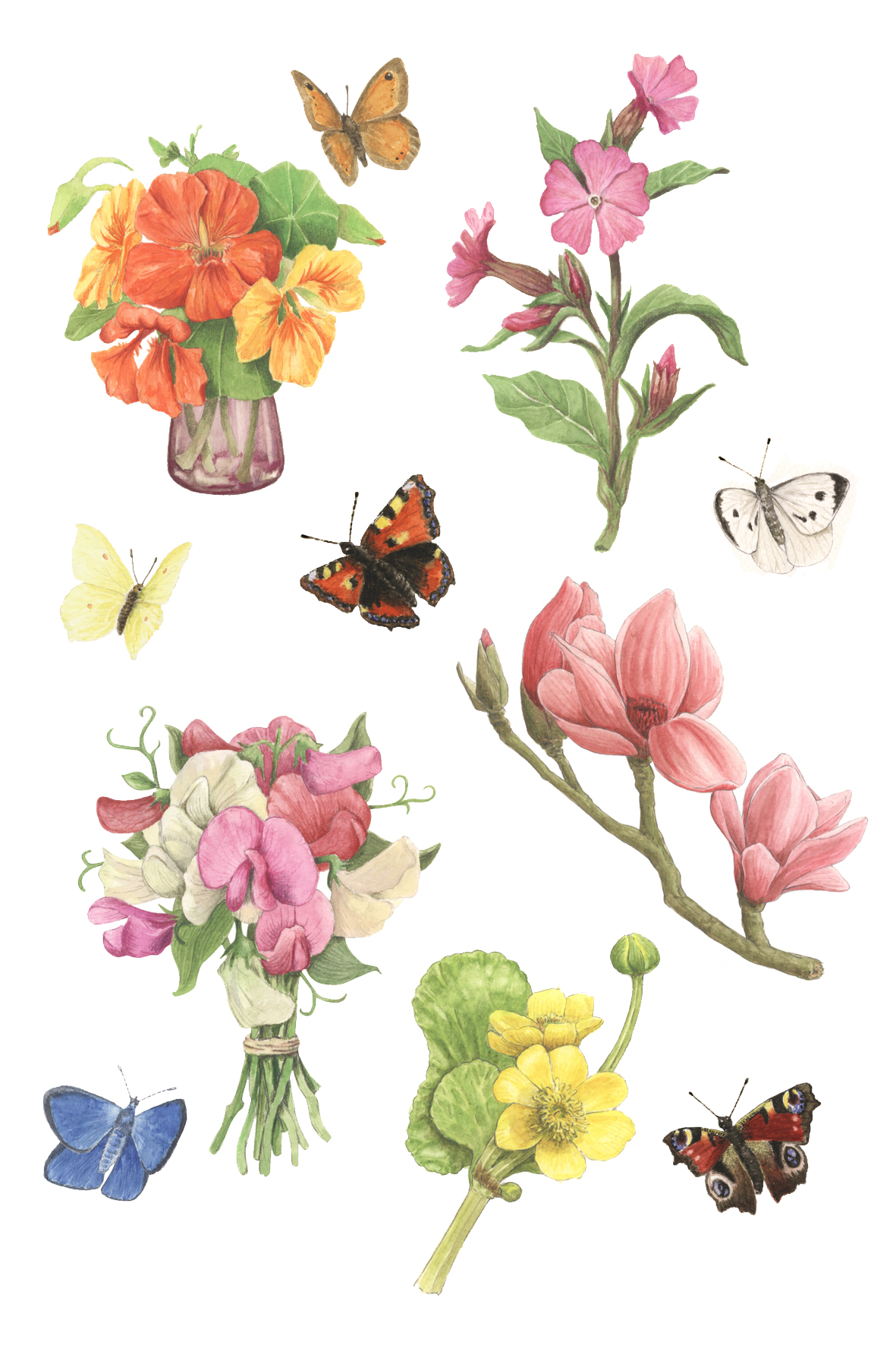 Bloemen Vlinder Natuur Realisme Planten Botanisch