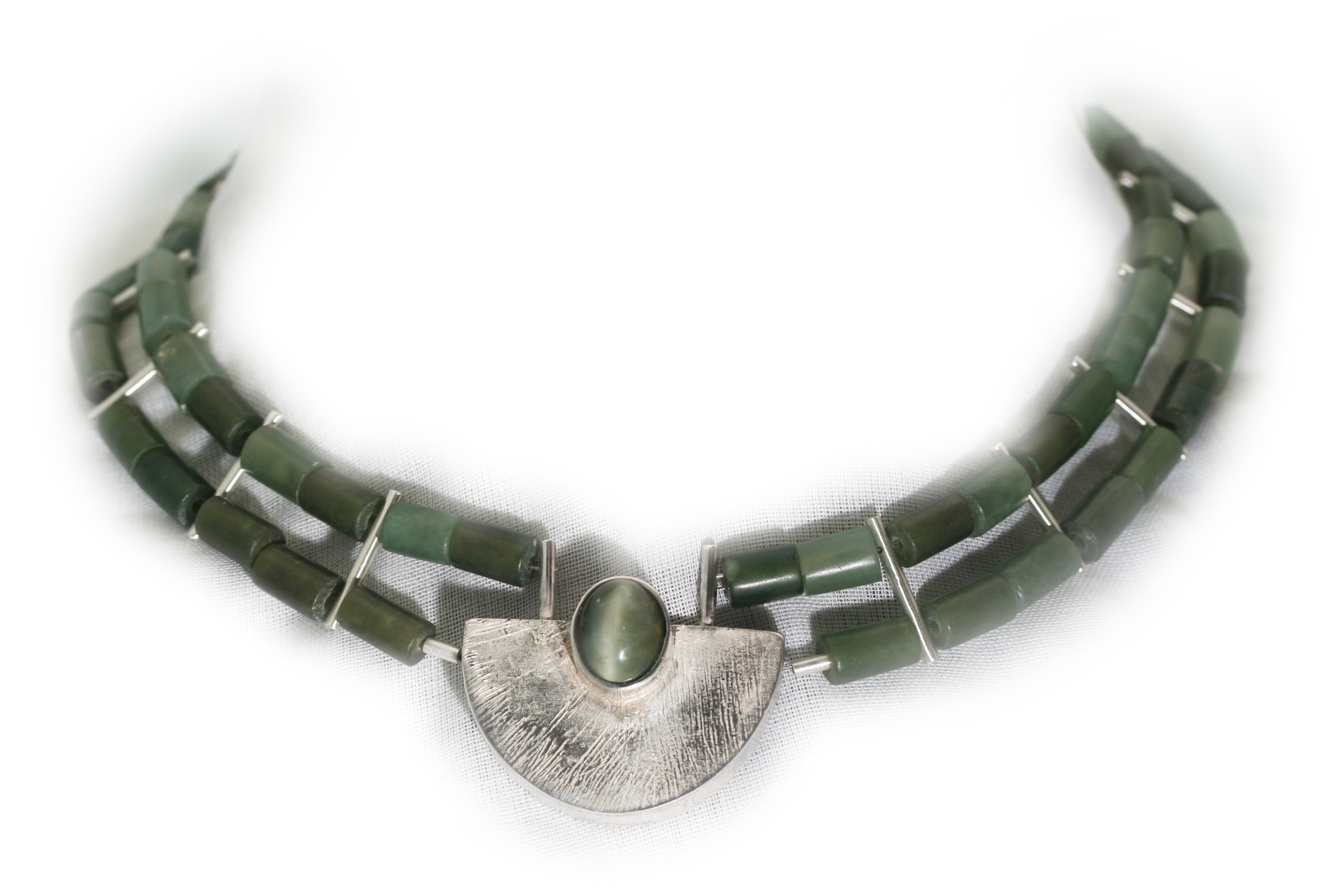Uit de serie egyptische princessen: Collier van zilver, jade en kornerrupien kattenoog