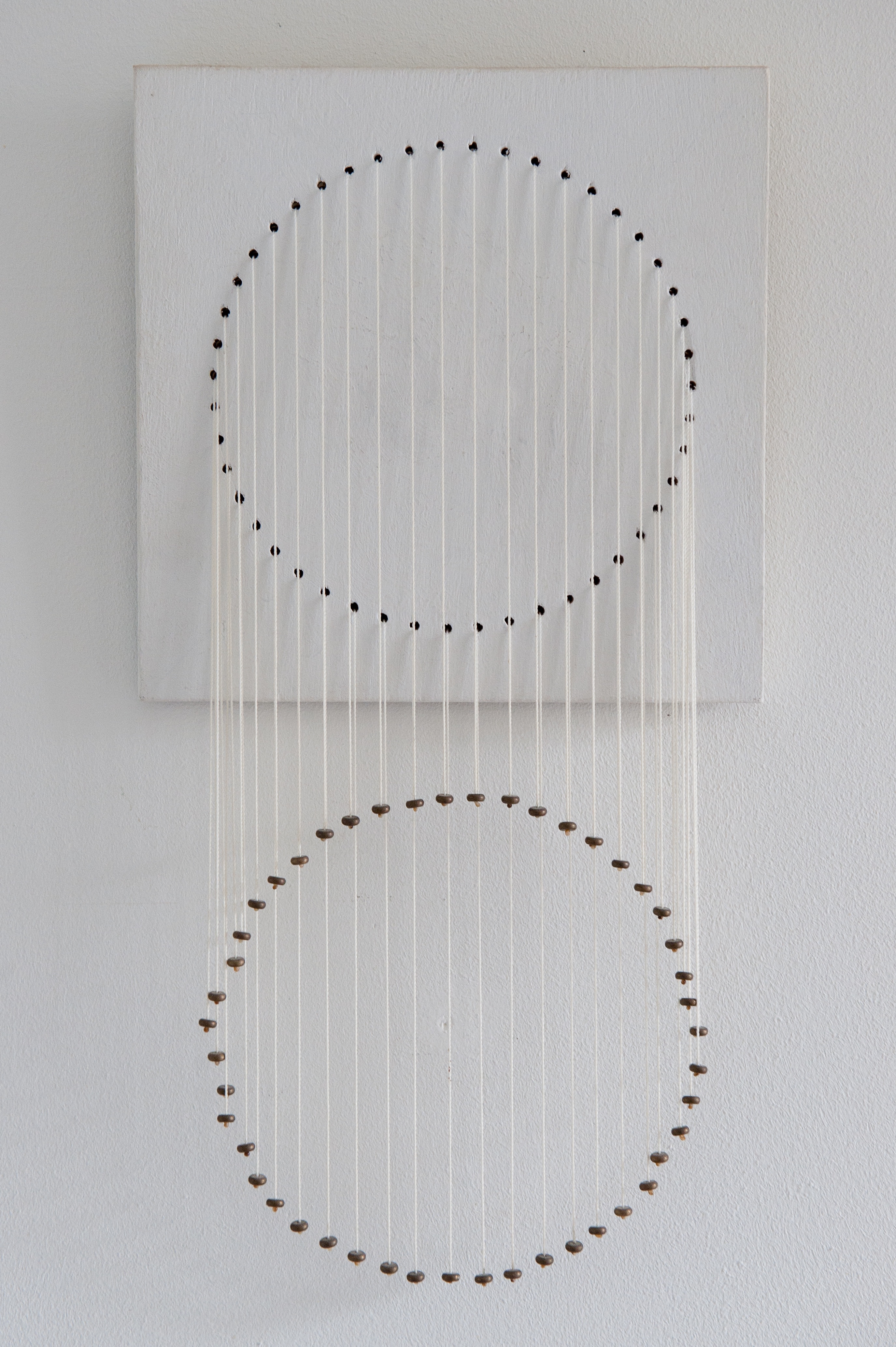 Door mijn ogen gezien, is de tastbare wereld opgebouwd uit puntjes. Vele bewegende puntjes, in verschillende dichtheid, veroorzaken vorm, maar veel minder vast dan je tastend zou voelen. In mijn werk communiceer ik deze waarneming.