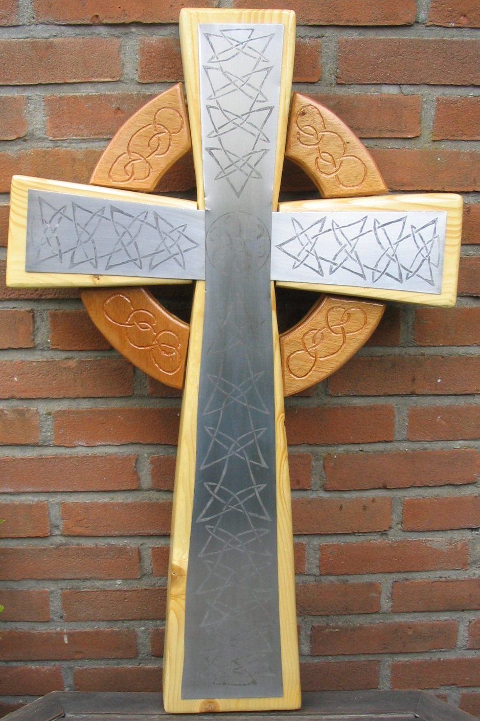 Hangend gotisch Keltisch kruis, gemaakt van hout en metaal