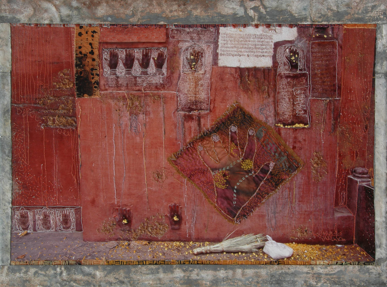 Ik ben een materialen mens, en maak samenvoegingen van verschillende materialen; foto’s, stoffen en borduursels, soms ook gecombineerd met hout, lood en steen, op wisselende formaten