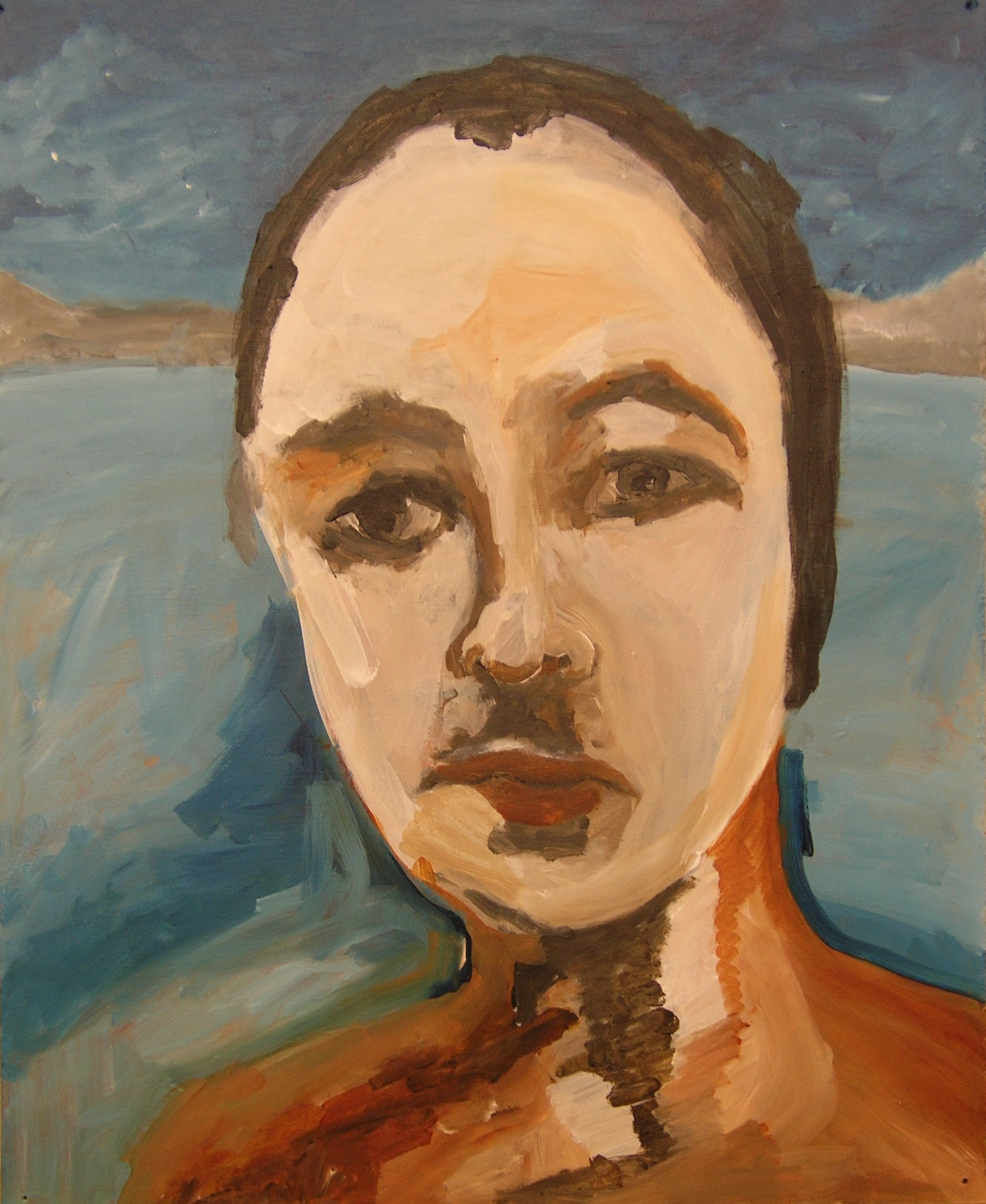 Wit Landschap Blauw Acryl Man Ogen Groot Eenzaam Alleen
