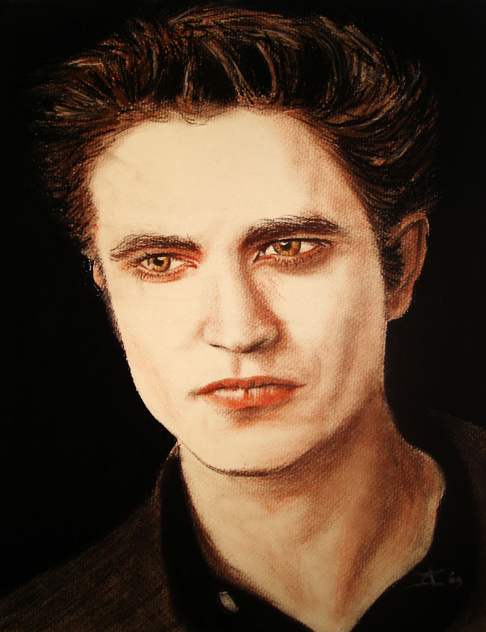 Edward Cullen Robert Pattinson Schets Conte Potlood Pencil Portret Portrait Twilight New Moon Saga Head Hair Hoofd Haar Huid Vampier Kleur