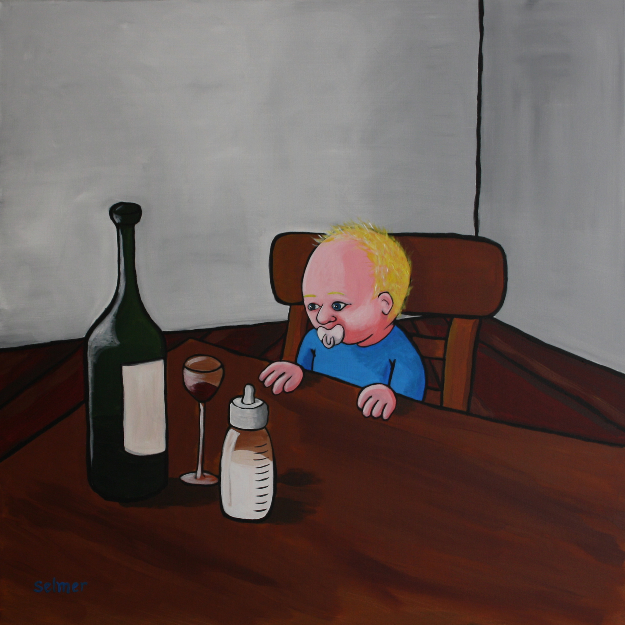 Selmer Heine (1979) heeft een zeer creatieve en originele geest. Hij beschouwt het leven op geheel eigen wijze en vertaalt dit in een herkenbare, duidelijke stijl in zijn doeken. Zijn schilderijen zijn cartoonesk, kleurrijk en veelal vrolijk. Toch kennen ze niet zelden een tegenstelling tussen luchtige alledaagsheid en diep bewustzijn of treurige romantiek.