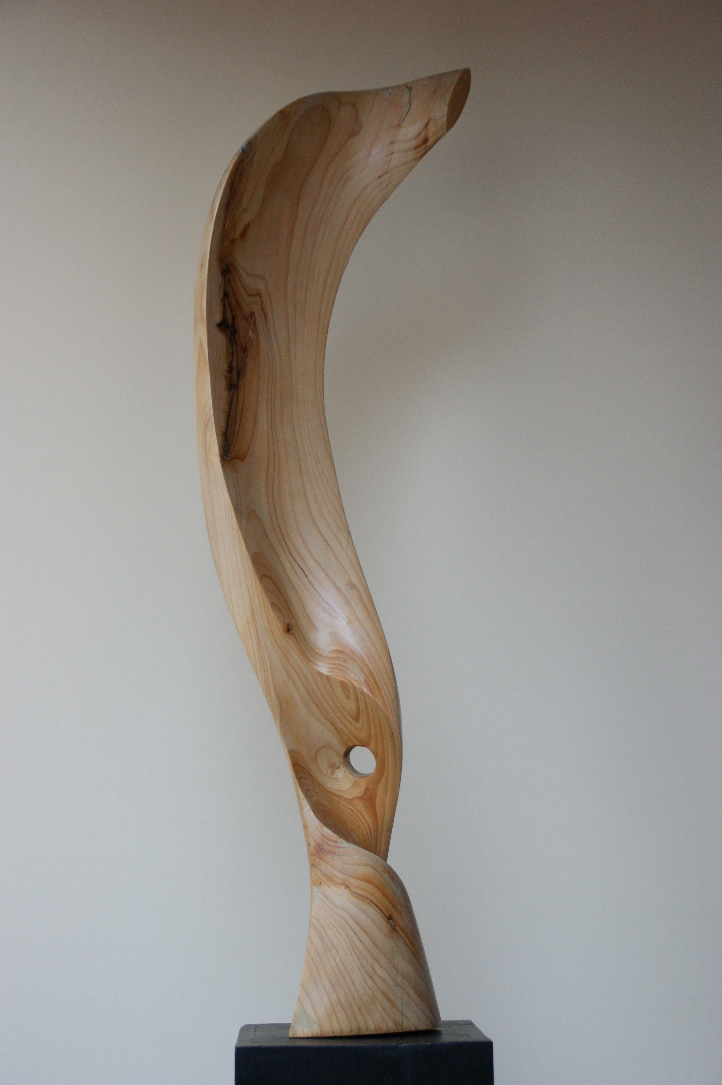 Dit beeld maakte ik in een moeilijke periode. De vorm suggereert hoop en streeft omhoog. Het beeld is van cederhout en kan dus, in tegenstelling tot de meeste houten beelden, buiten staan.
