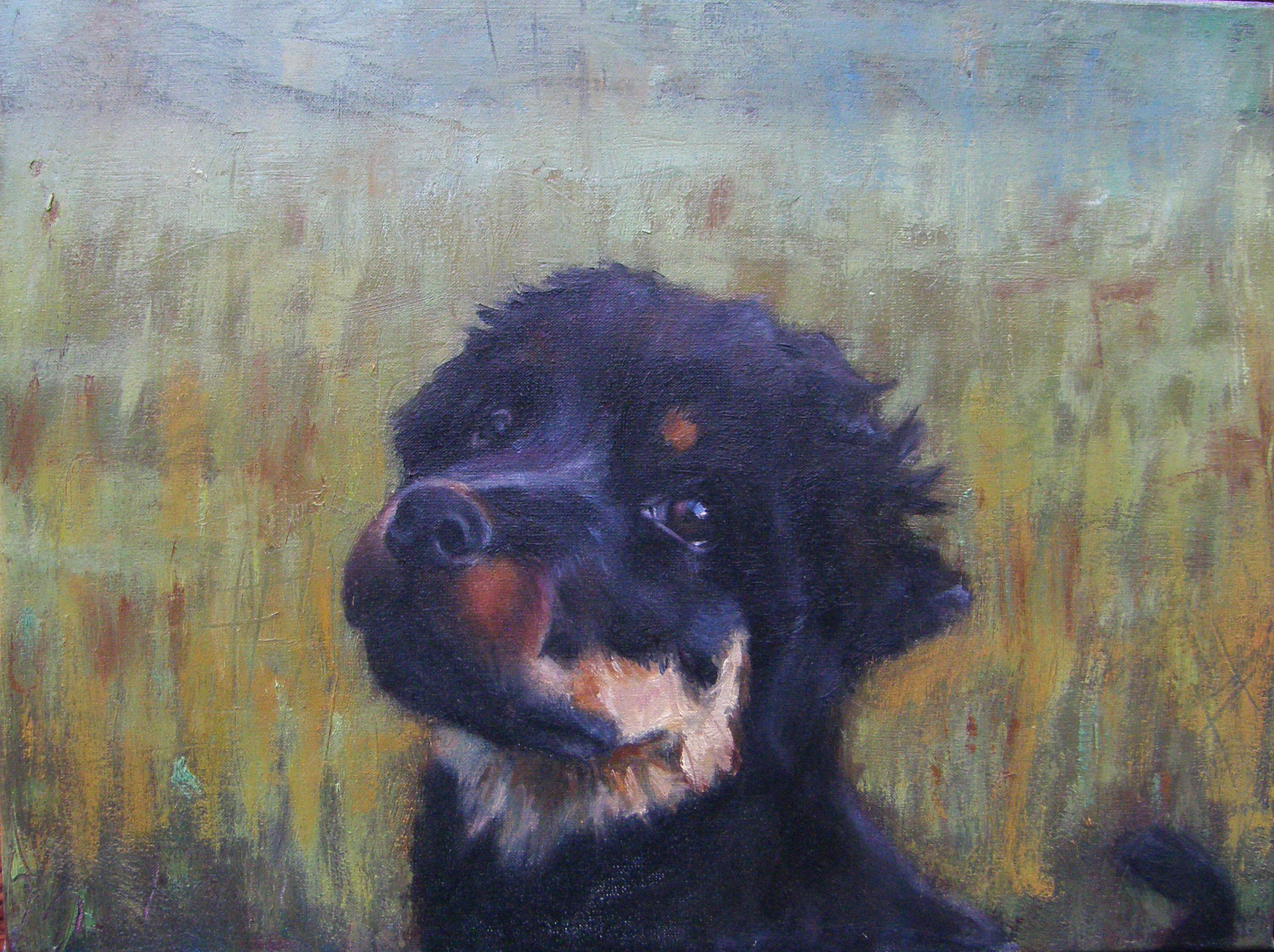 Portret Olieverf Hond Pup Dierenportret Rottweiler