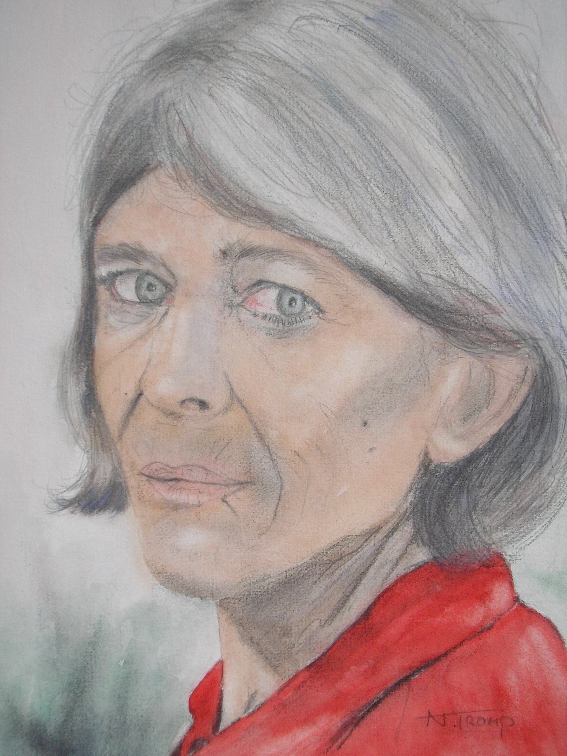 Welkom op de website met tekeningen en schilderijen van Nico Tromp. Ik ben geboren in Santpoort-Noord. Op enkele korte cursussen en workshops na ben ik autodidact. Hoewel ik vroeger al veel tekende ben ik pas veel later, vanaf 1999 weer echt serieus gaan tekenen en schilderen. De aquarellen die ik maak zijn vaak licht van kleur en textuur. De portretten zijn gemaakt met zacht potlood op wit papier of geschilderd als aquarel of met gemengde techniek. Met vriendelijke groeten, Nico Dit is een portret van Adrianus Tromp, getekend met zacht polood. Hij is de jongste broer van mijn vader en in de zomer van 1944 op 17jarige leeftijd verdronken tijdens het zwemmen in het Noordzeekanaal.
