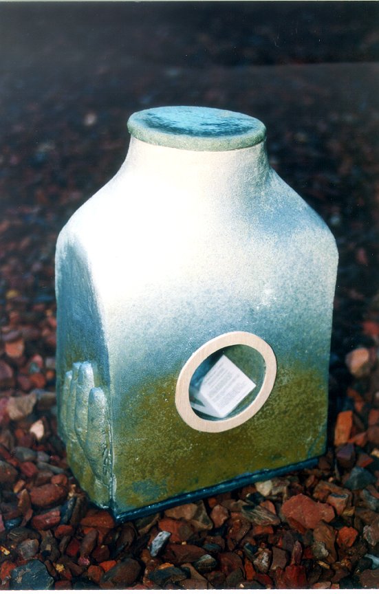 Urn met handafdruk van partner overledene