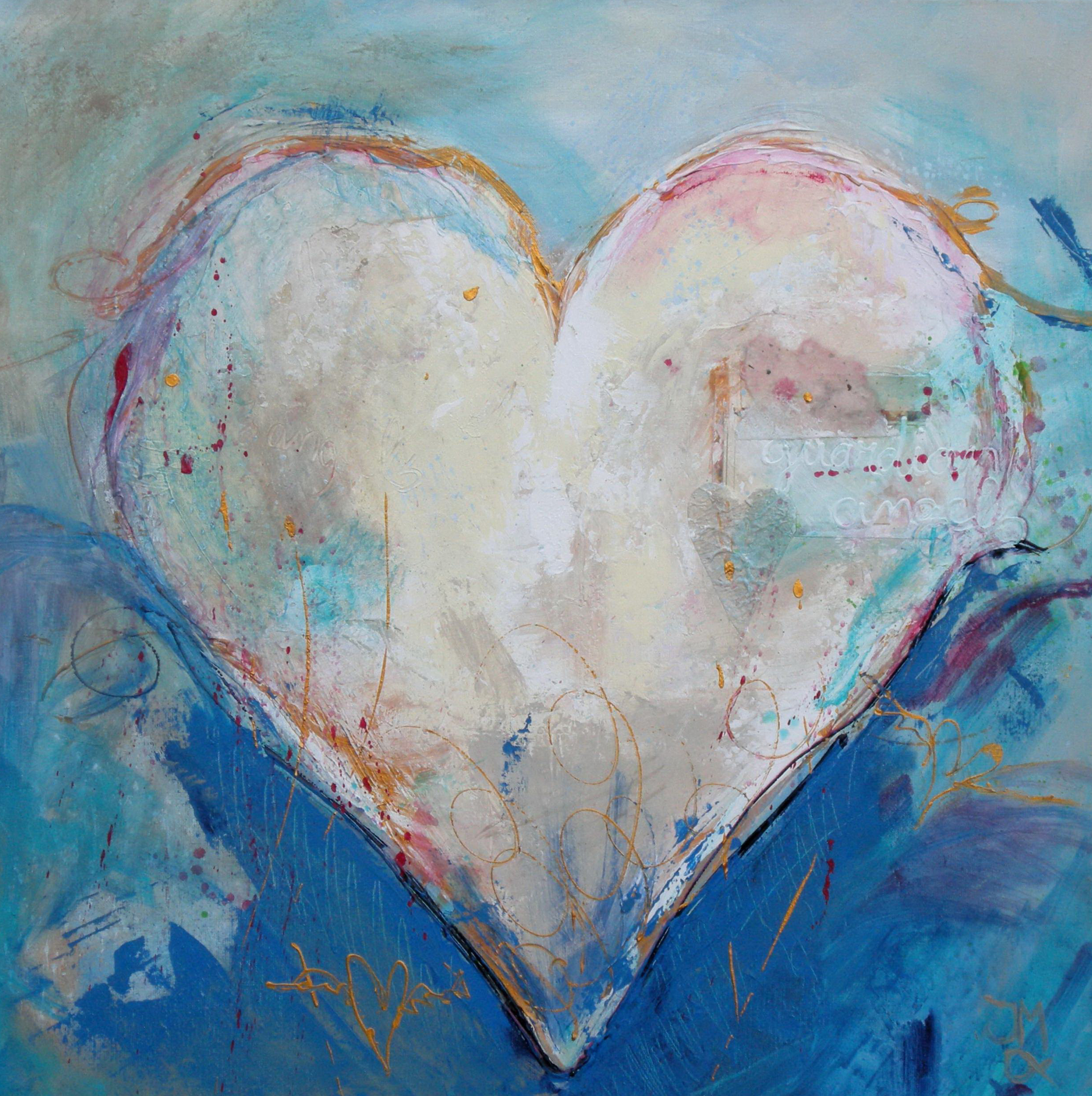 Acryl op doek, gemengde techniek waarin o.a. handgeschept papier is verwerkt. (in opdracht is een soortgelijk schilderij altijd mogelijk)