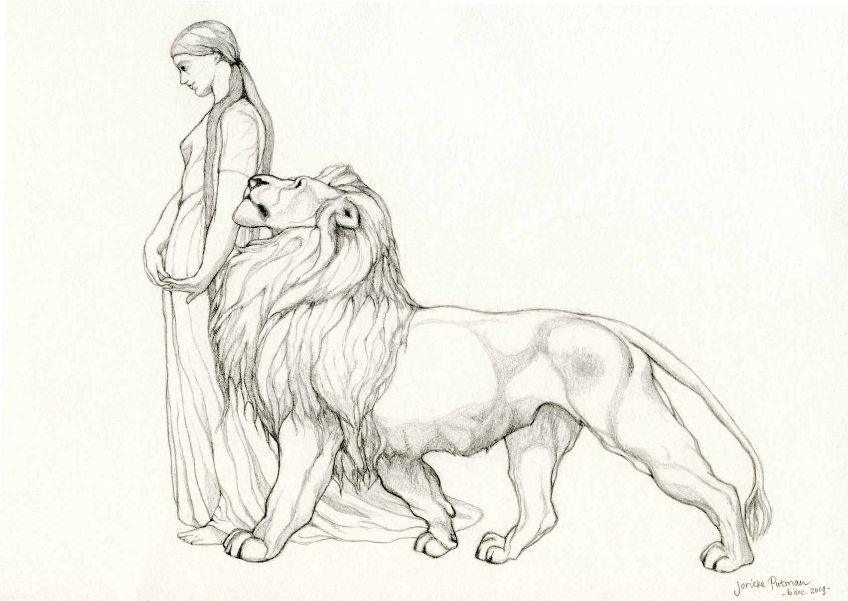 dec. 2009; Una and the lion, naar voorbeeld van kunstenaar Briton Riviere (prerafaëliet) - voor mij een prachtige verbeelding tussen het vrouwelijke en het mannelijke