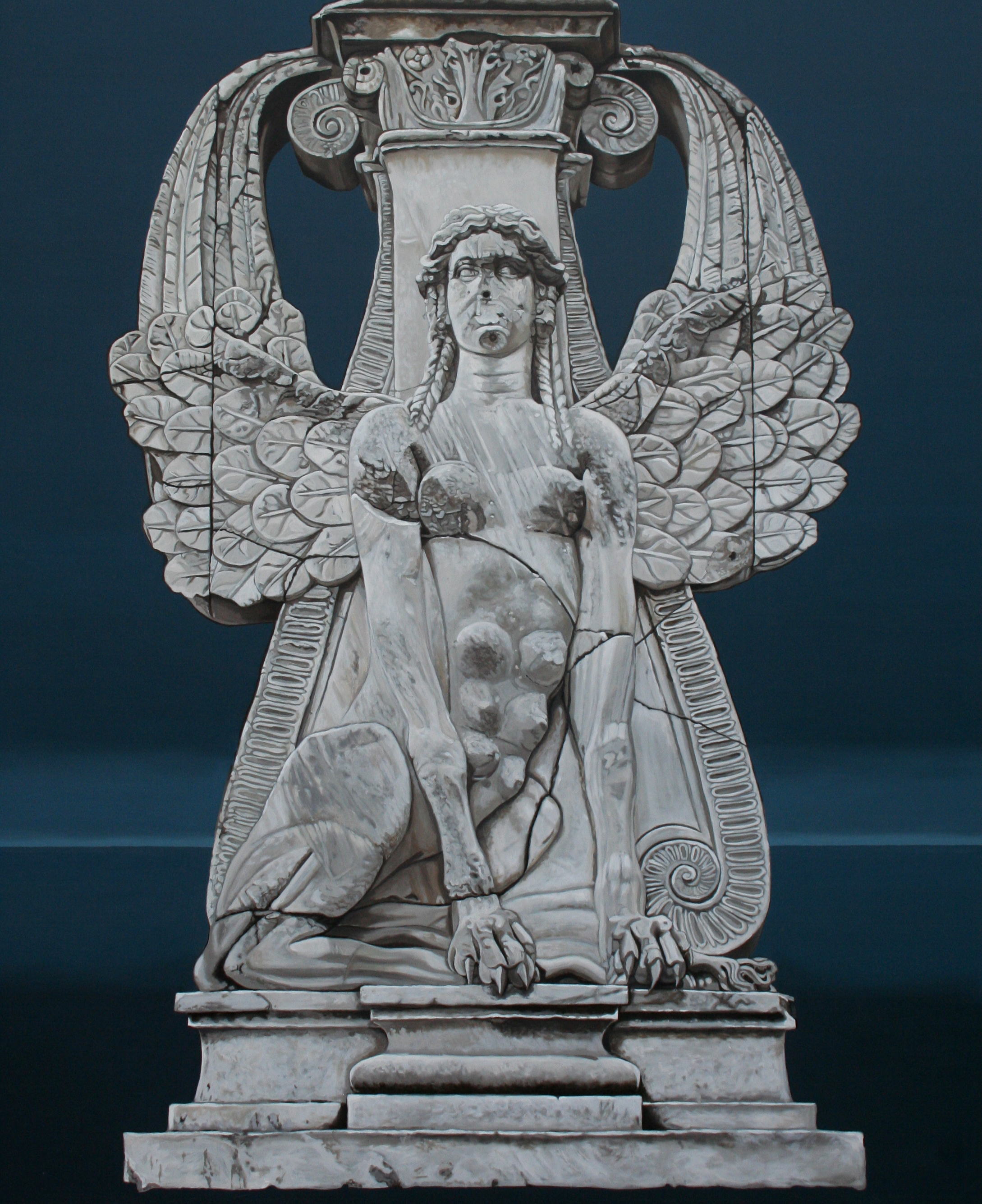 Blauw Blue Vleugels Beeld Steen Reliëf Realistisch Olieverf Oilpaint Grijstinten Realistic Hill Rome Sfinx Sphinx Forum Romanum Winged Palatijn Paltine