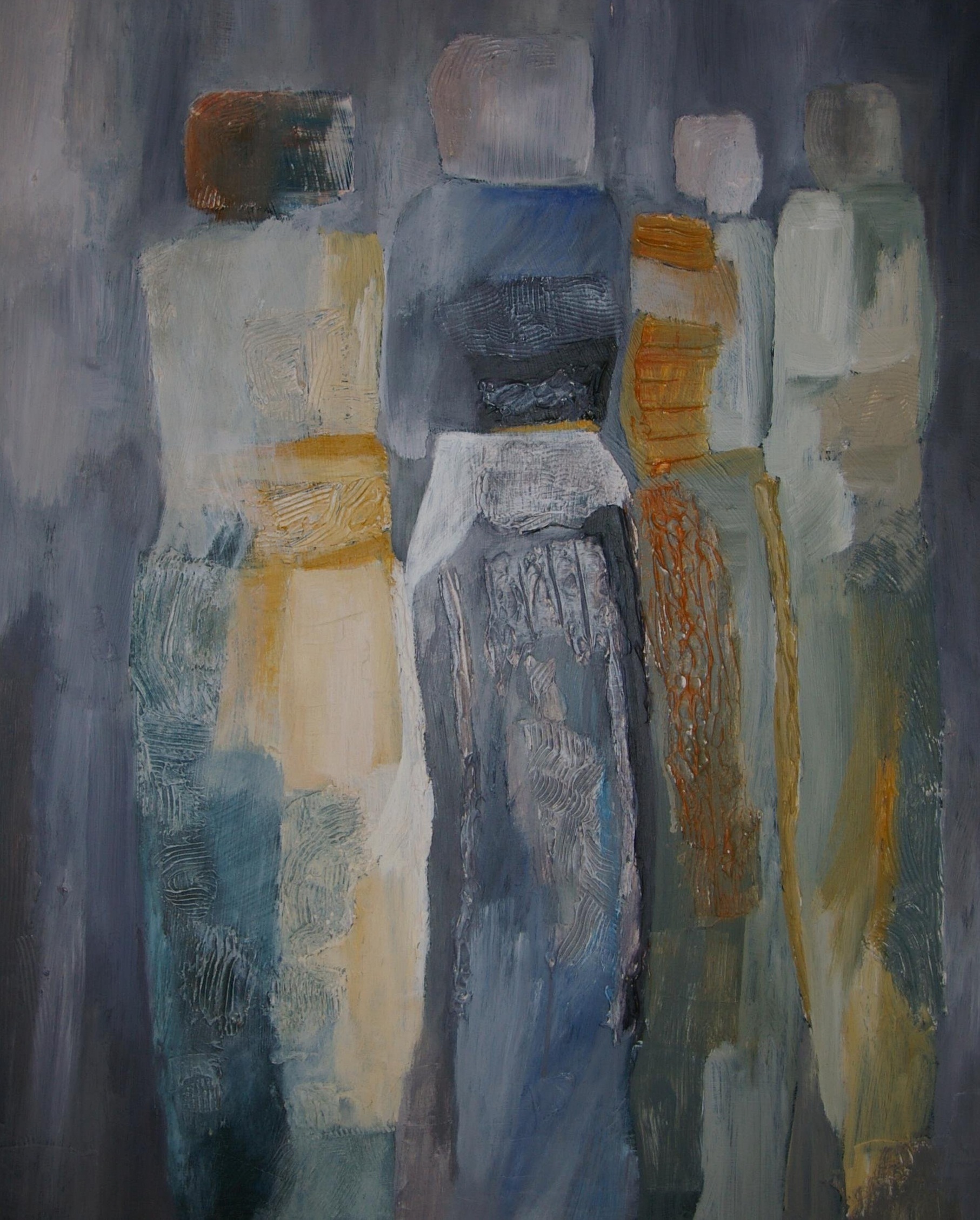 Acryl in grijs, blauw en oker