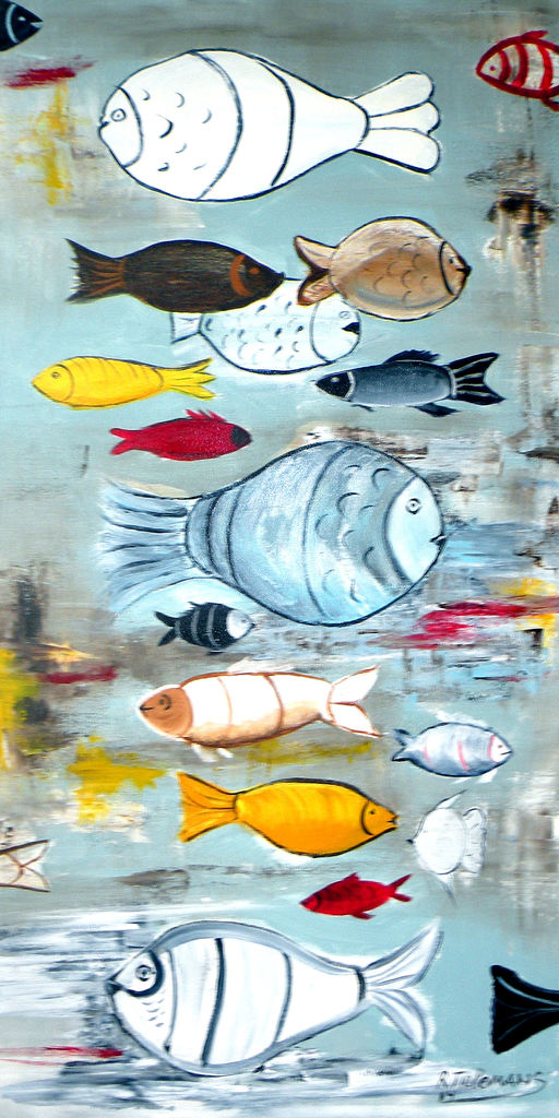 Aquarium, acrylverfschilderij