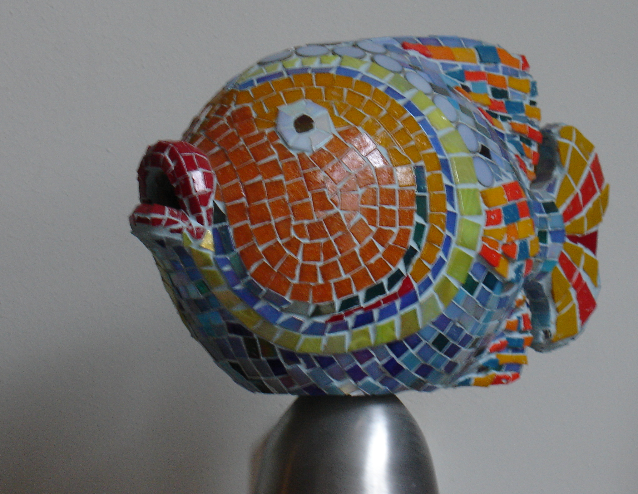 Mozaiek met handgesneden glas en keramiek