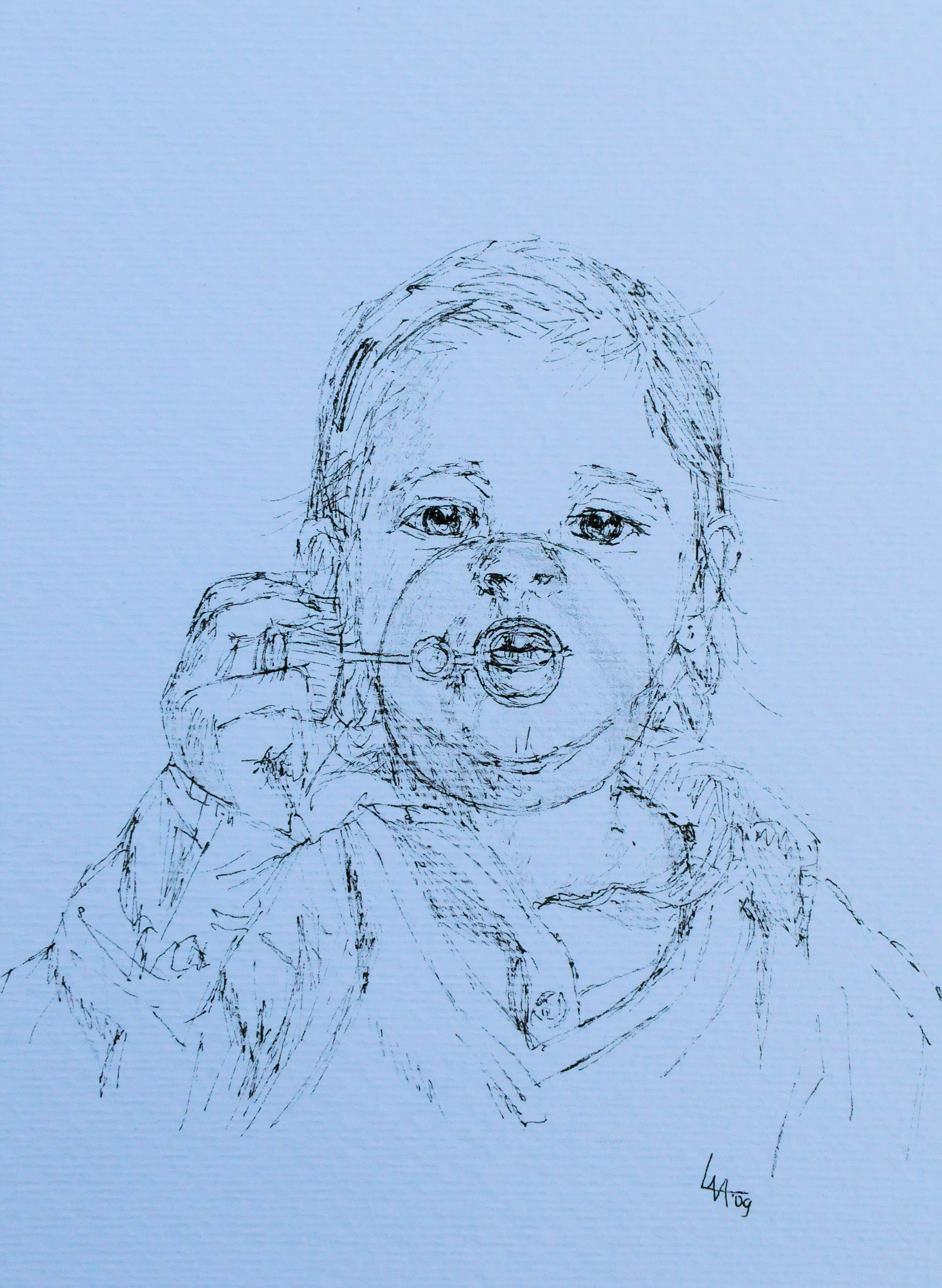 Pentekening van meisje, inclusief zwart lijstje (niet afgebeeld).