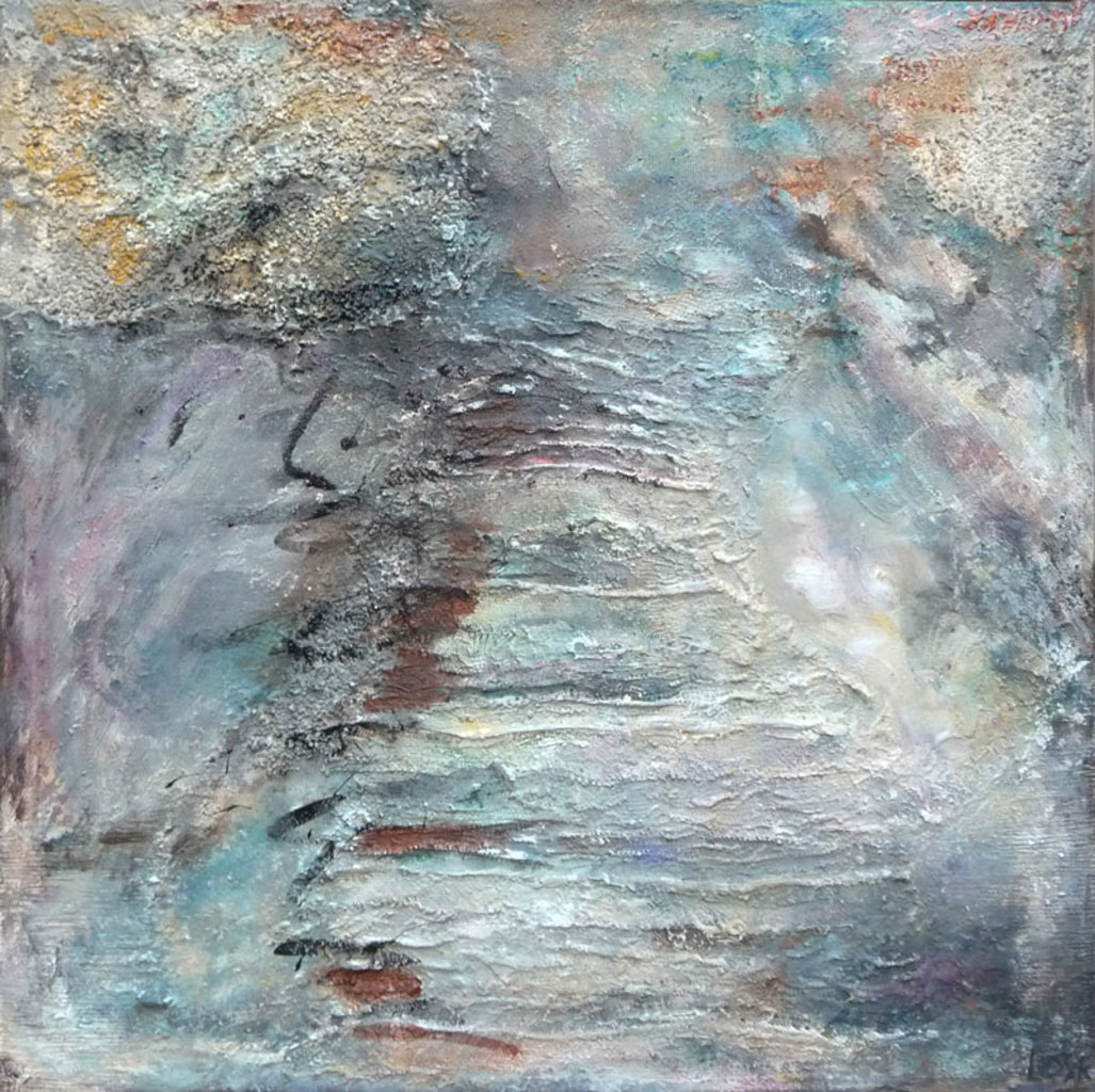 Iets in de buitenwereld intrigeert mij en door deze impressie uit te werken wordt zij blijvend deel van mijn binnenwereld. Laag na laag bouw ik aan de uiteindelijke vorm. Tijdens het werken komt er een stroom van associaties op gang. Het is een constant zoeken naar evenwicht tussen de verf en de andere materialen.