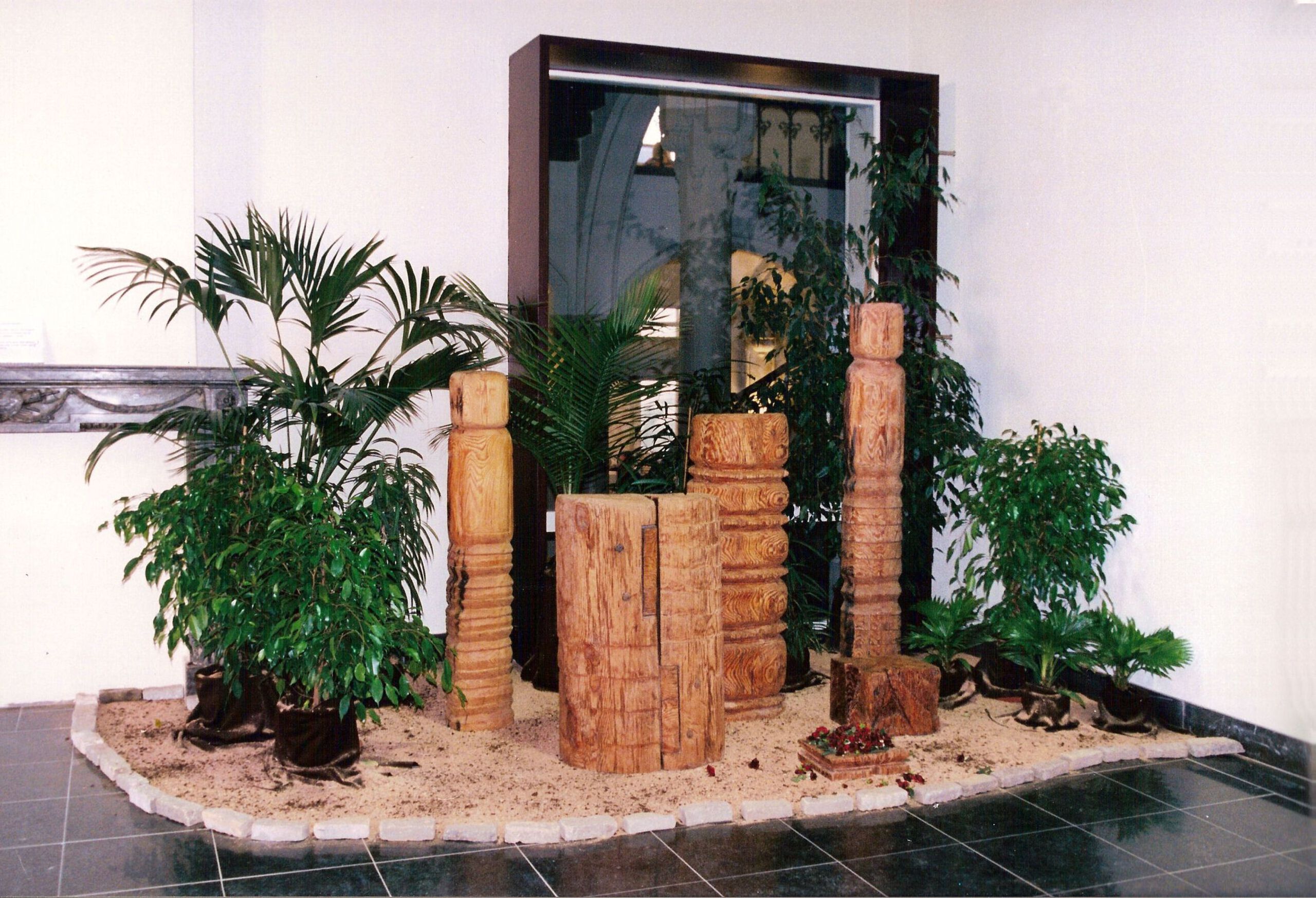 Bringing Their Souls Back Home ... Het 400 jaar oude hout uit de vloer van het Oost-Indisch Huis, Amsterdam [de thuisbasis van de V.O.C.] is drager geworden van de erkenning dat uitbuiting niet mag/kan - nooit ... De Garuda, de mythische vogel [half mens, half adelaar] met zijn -instant- transformerende kracht, vormt om die reden het zevende, het laatste, 'besluit'stuk. Hier nog in het Oost-Indisch Huis, náást de Bewindhebberskamer, de kamer waar de Heeren Zeventien [de bestuurders van de VOC] bijeen kwamen. De groep heeft een mooie plek gekregen op RUIGOORD: ze zijn daar thuis! Vanaf de 'weg' zijn ze zichtbaar voor iedereen ... in de tuin van huis nr 20 informatie over hoe de groep zich zelf manifesteerde tijdens het maakproces en foto's van de beelden op hun nieuwe plek ... via mijn e-mail
