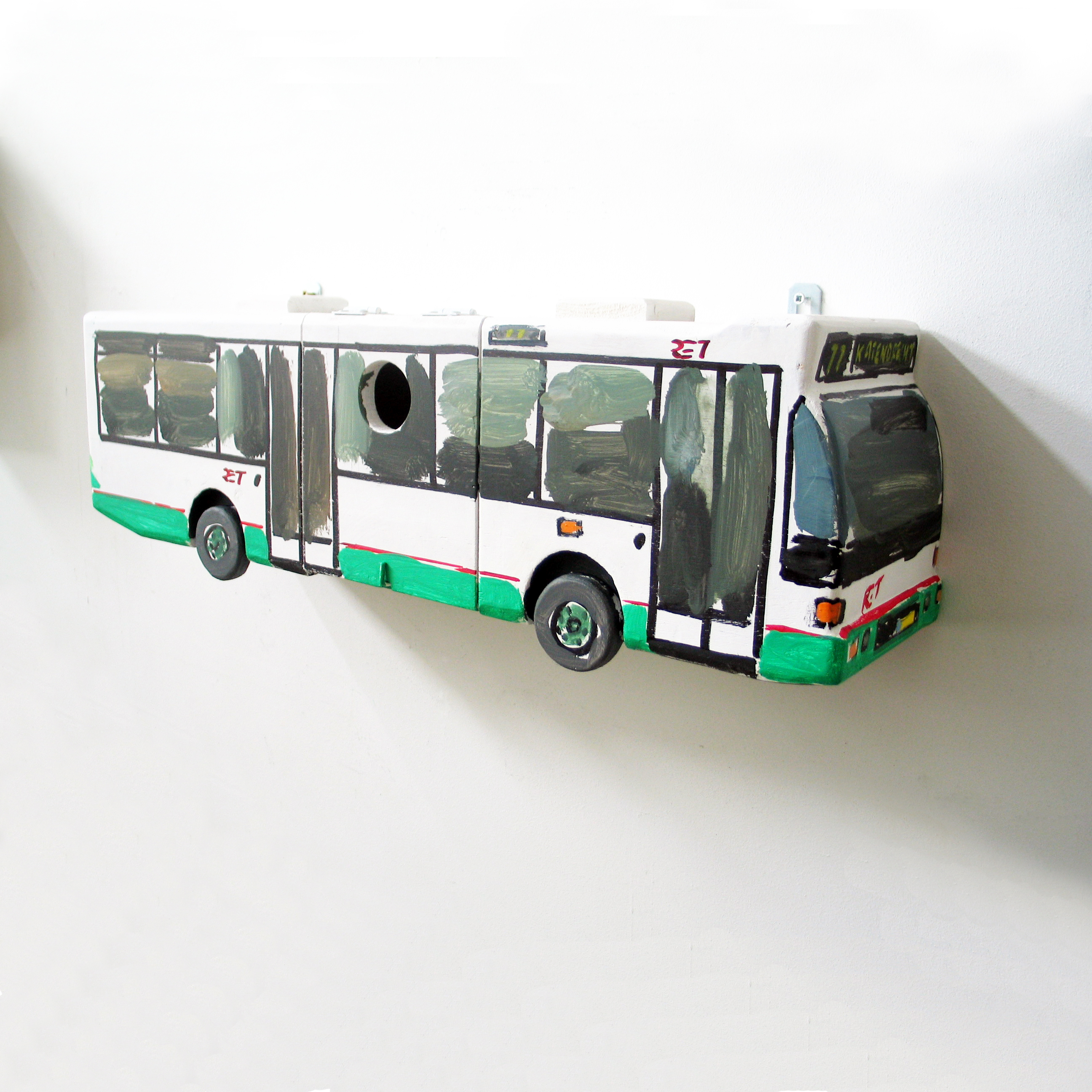 Dit is een nestkast voor kleine vogels zoals mezen. Het is gemaakt naar een Rotterdamse (RET) stadsbus.