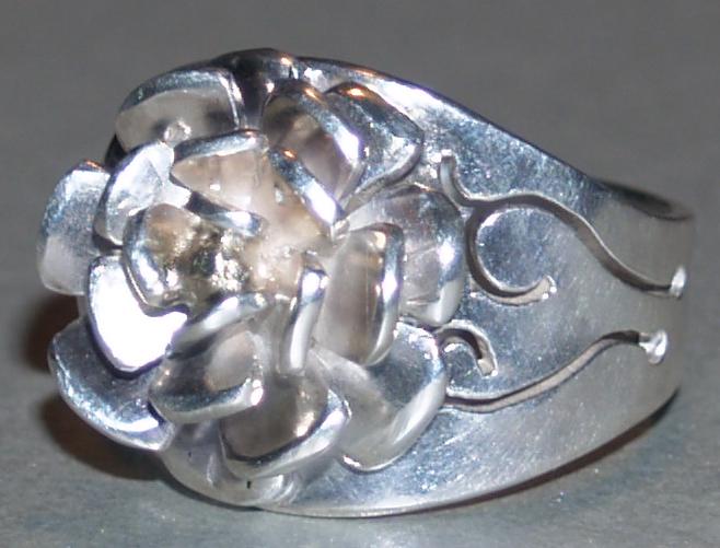 Angela Lokhorst, 38 jaar. Zij maakt sieraden van zilver, goud en glas. Het liefst werk zij met zilver, edelsmeden. Twee jaar geleden is zij begonnen met het maken van glaskralen. Een assortiment aan kettingen, hangers en armbanden gecombineerd met prachtige ringen, vormen een lust voor het oog.